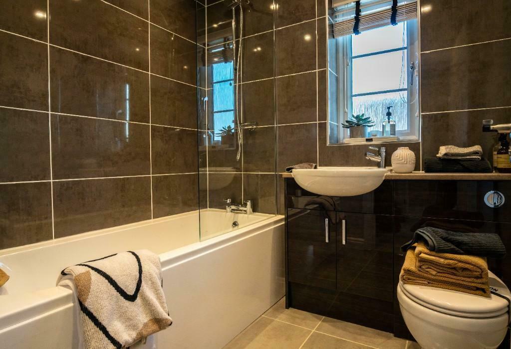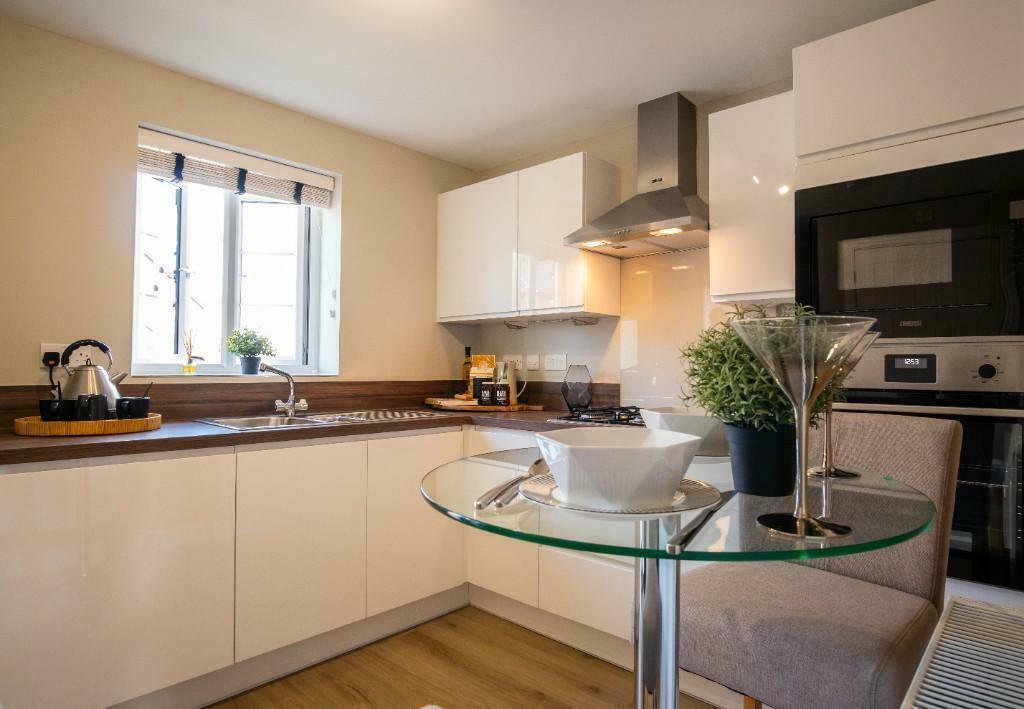 This fantastic SHOWHOME has an OPEN PLAN LOUNGE/DINING with FRENCH DOORS leading to LANDSCAPED GARDEN, kitchen with fitted OVEN, HOB, EXTRACTOR FAN & MICROWAVE & WC. Completed with LIGHT FITTINGS AND WINDOW DRESSINGS. Upstairs you will find 2 bedrooms & a fully fitted family bathroom. SINGLE GARAGE.