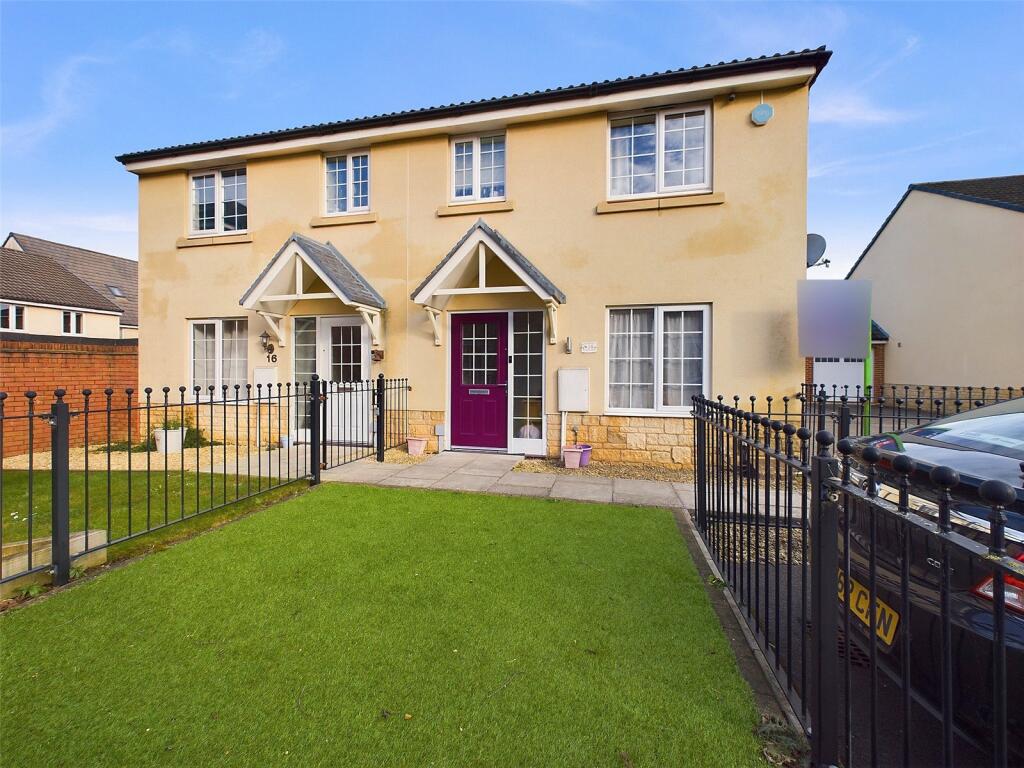 This three-bedroom semi-detached house in Quedgeley, Gloucester, presents itself as a reasonably well-maintained family home. The interior photographs showcase a clean and modern finish, suggesting it is either recently renovated or regularly updated. The kitchen and bathrooms appear contemporary and in good order. The presence of a small artificial-turf garden offers some outdoor space, but may be restrictive for families with many children and pets.