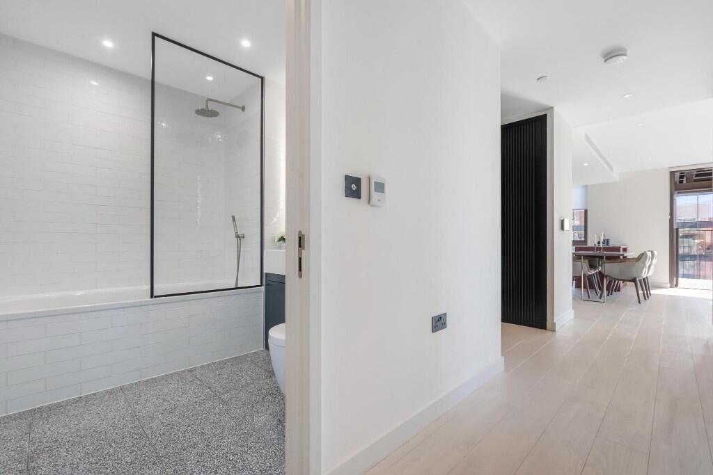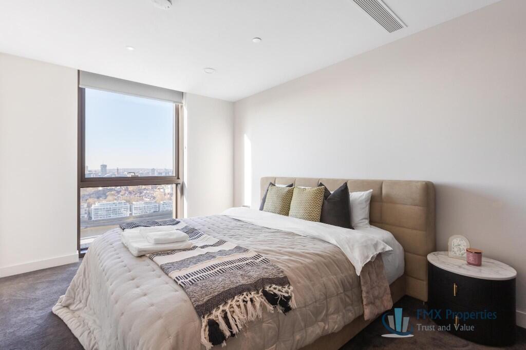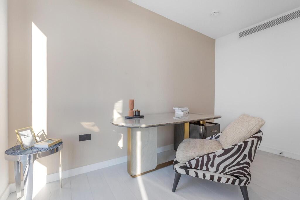 This exquisite two-bedroom river view apartment, located the prestigious Embassy Gardens development, offers a blend of modern luxury and sophisticated design.