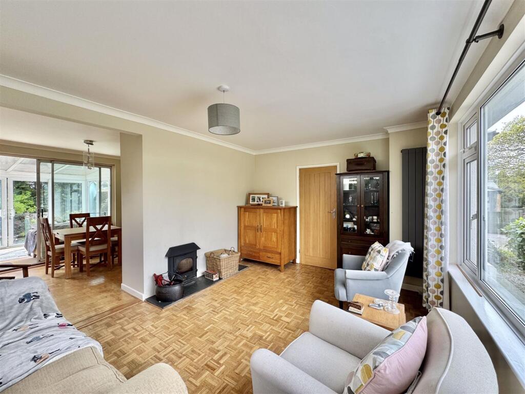 A spacious and well presented detached three bedroom dormer bungalow with far reaching views, driveway parking, garage and enclosed gardens. Excellent village location close to amenities, fantastic living space with wood burning stove, conservatory, mains gas central heating and double glazing.