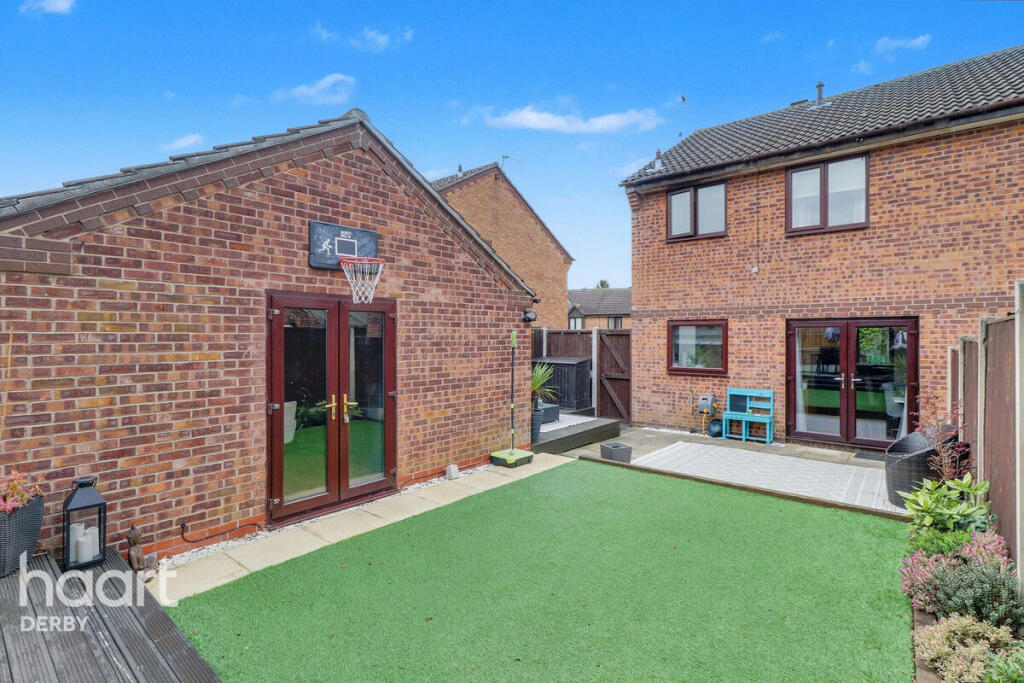 This is a three-bedroom semi-detached house in Oakwood, Derby. The property is in good condition and has a modern interior. It benefits from a garden with both lawn and patio areas. The property is located close to schools and transportation links. The list price of £230,000 is reasonable for the area and the condition of the property. The property is located close to schools and transportation links, making it a good option for families and commuters. The modern interior and well-maintained garden make this property an attractive option for buyers looking for a home in move-in condition.