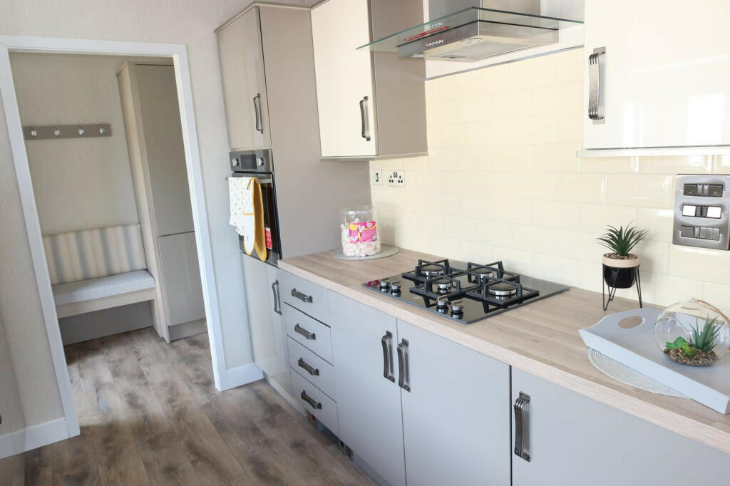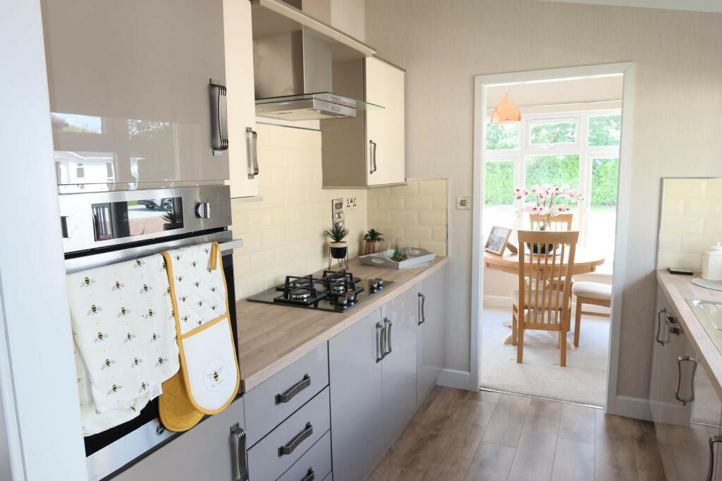 This property is a well-maintained and modern two-bedroom, two-bathroom park home located in Wheldrake, near York, North Yorkshire. The images showcase a recently built property in excellent condition, with a contemporary interior design and a clean, modern aesthetic. The kitchen is fully equipped, and the living spaces are bright and comfortable. The bedrooms feature built-in wardrobes and are tastefully decorated. The bathrooms are also modern and fully fitted. The property benefits from its location near the city of York, providing access to a comprehensive range of amenities and transport links, and also benefits from relatively close proximity to several primary schools. However, it’s crucial to note that it is a park home, which means that there are site fees associated with owning the property, that may not be immediately apparent from the listed price. The limited plot size is a characteristic of park homes, providing little or no garden space and may not suit all buyers. Potential buyers should also be aware of the typical restrictions associated with park home living, such as age restrictions, and that the property is not freehold.