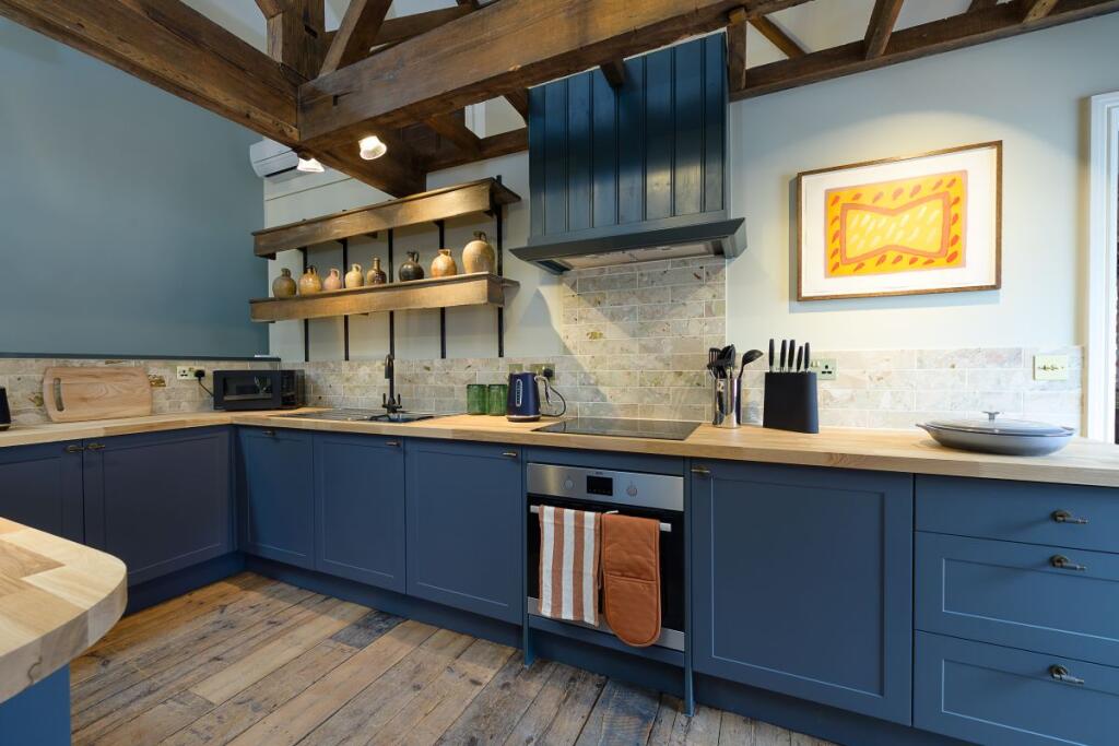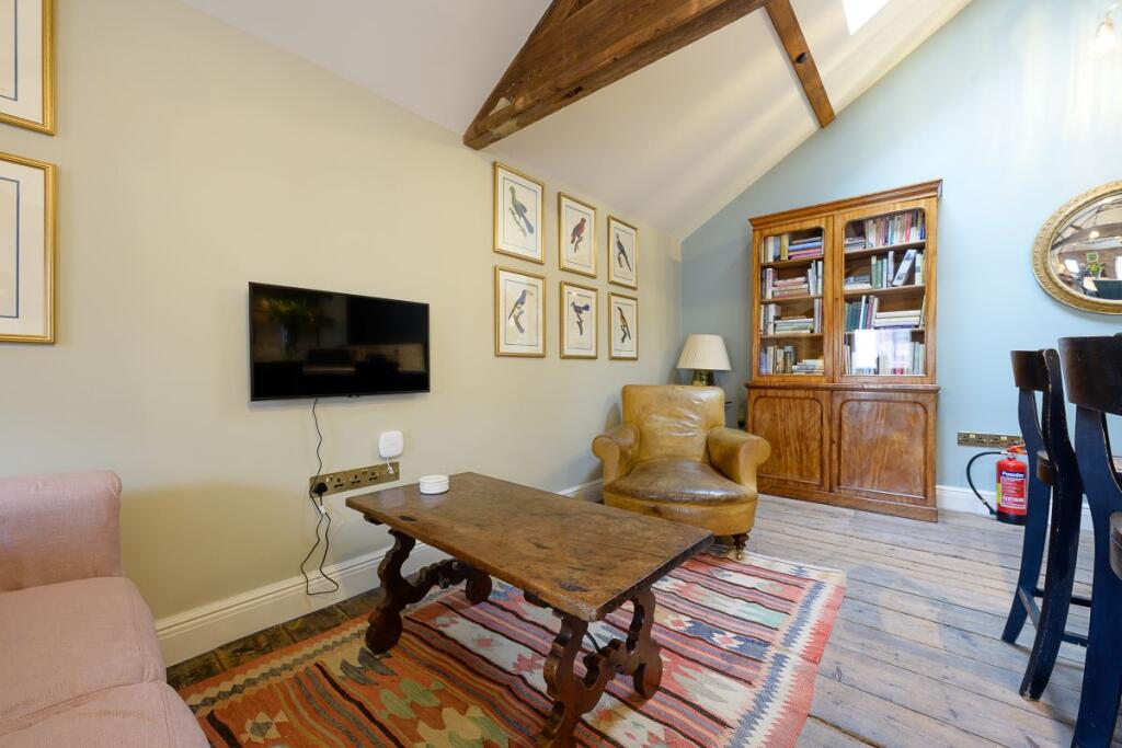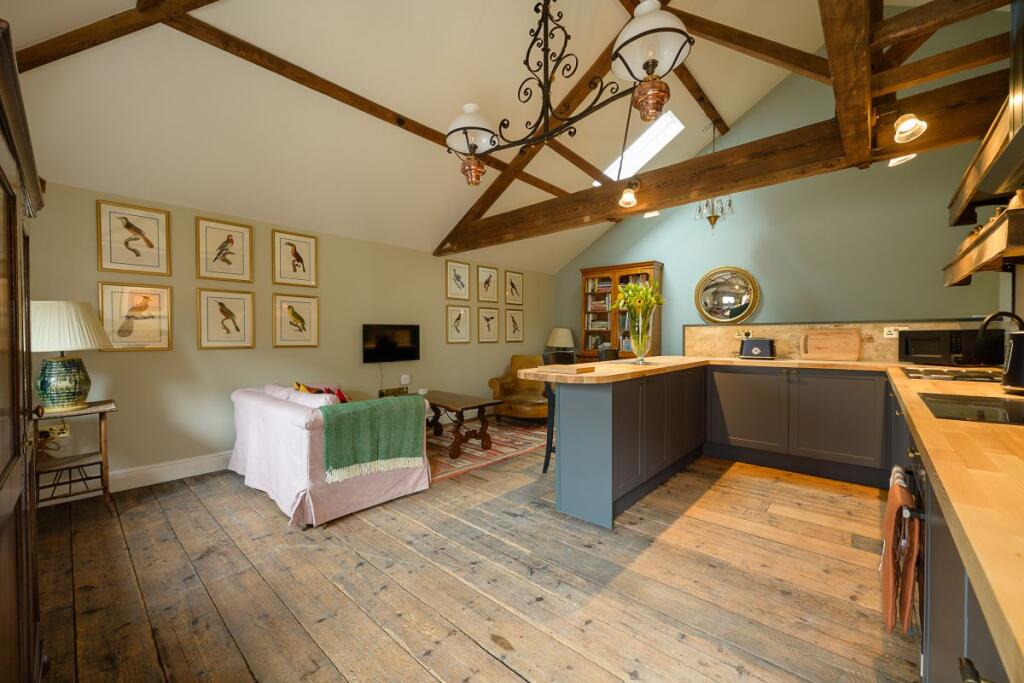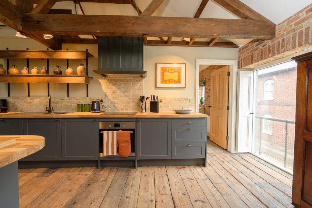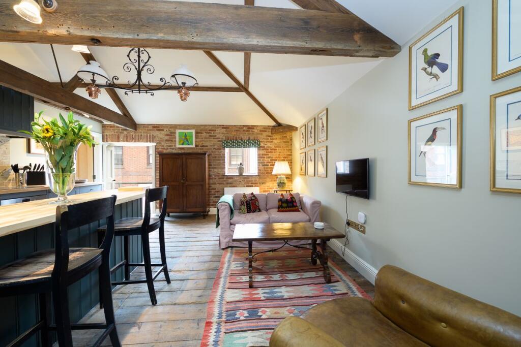 Unique, Spacious High End, fully furnished One bedroom apartment in the heart of Ross on Wye. Open plan kitchen/lounge, appliances, bedroom with antique brass bed, exposed beam open ceiling, high spec en suite with walk in shower. Permit parking