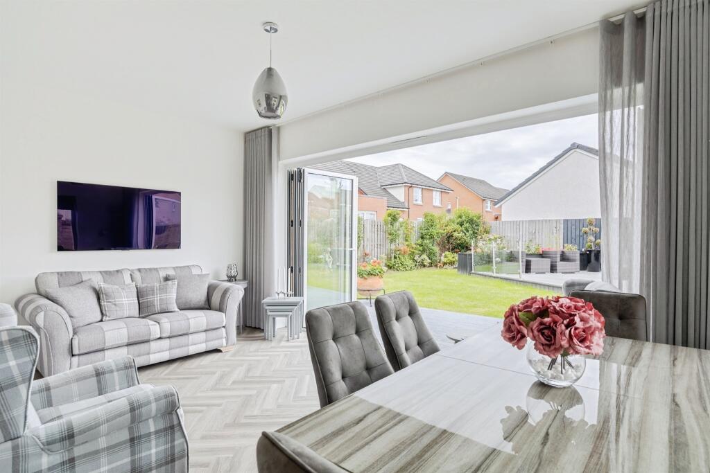 Craigton Drive is set within the heart of Dargavel Village, Bishopton. This beautifully presented four-bedroom detached Avant home is situated on a desirable corner plot within a sought-after residential development, offering a harmonious blend of contemporary design and practical family living.
