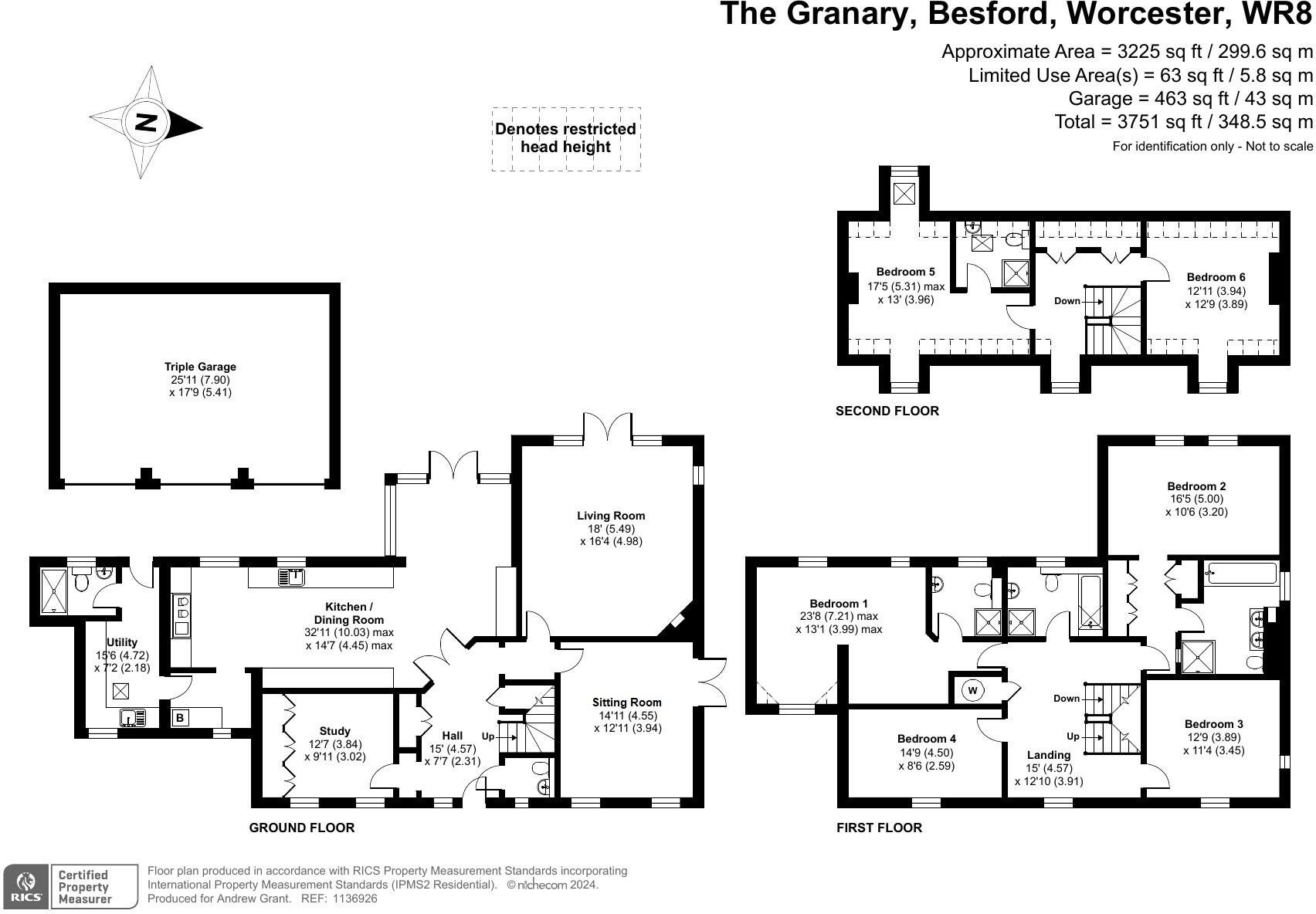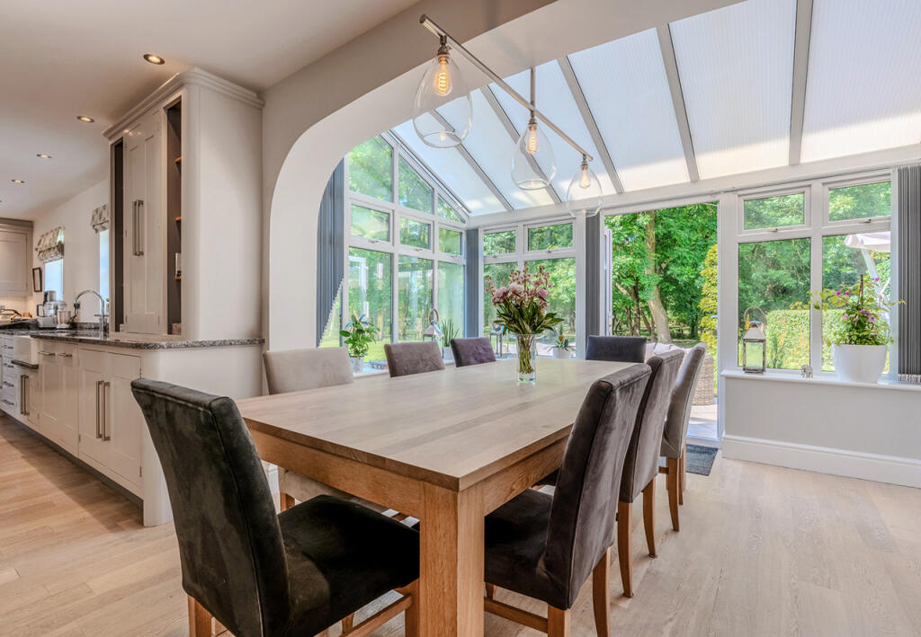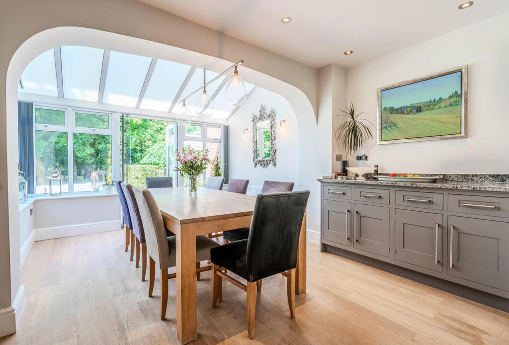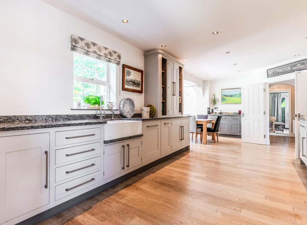 The Granary is a detached property situated in Besford, Worcestershire. The property benefits from a desirable location, excellent condition, and ample land. The location score is high due to its proximity to several good schools, including Defford-Cum-Besford Cofe School (rated ‘Good’ by Ofsted) which is approximately 3.91km away. The property is also within reasonable commuting distance to Worcestershire Parkway and Pershore train stations, offering convenient access to other areas. Based on the provided images, the property appears to be in excellent condition. The interior is modern, well-maintained, and tastefully decorated. There is no visible evidence of wear and tear or the need for renovation. The property includes a substantial plot of land, approximately 1.3 acres, featuring extensive gardens, a swimming pool, and various landscaping features. This is significantly larger than the average plot size in the area. Considering the property’s size (6,522 sqft), condition, location, and the generous land area, the list price of £1,000,000 appears to be in line with or slightly below the prices of comparable properties in the area. While the average price per sqft in the area is £169, this property’s unique features and larger plot size justify a higher price point. Nearby properties, such as 3 The Granary, which sold for £1,050,000 and has a smaller footprint (3,509 sqft) support this assessment. The property includes features such as a swimming pool, garage, and a well-equipped kitchen.