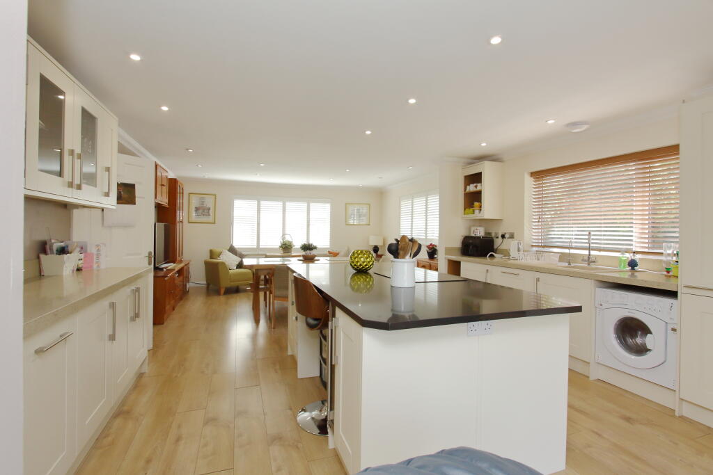 This property is a 2 bedroom, 2 bathroom detached bungalow located in Andover, Hampshire. The property benefits from a modern kitchen and extension. It is within close proximity to local schools and Andover train station. The list price is above the average price for the area, but the property is larger than average and appears to be in good condition. The property also has a garden and off road parking. The property is well presented and benefits from solar panels on the roof.
