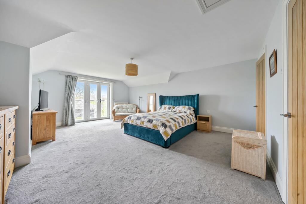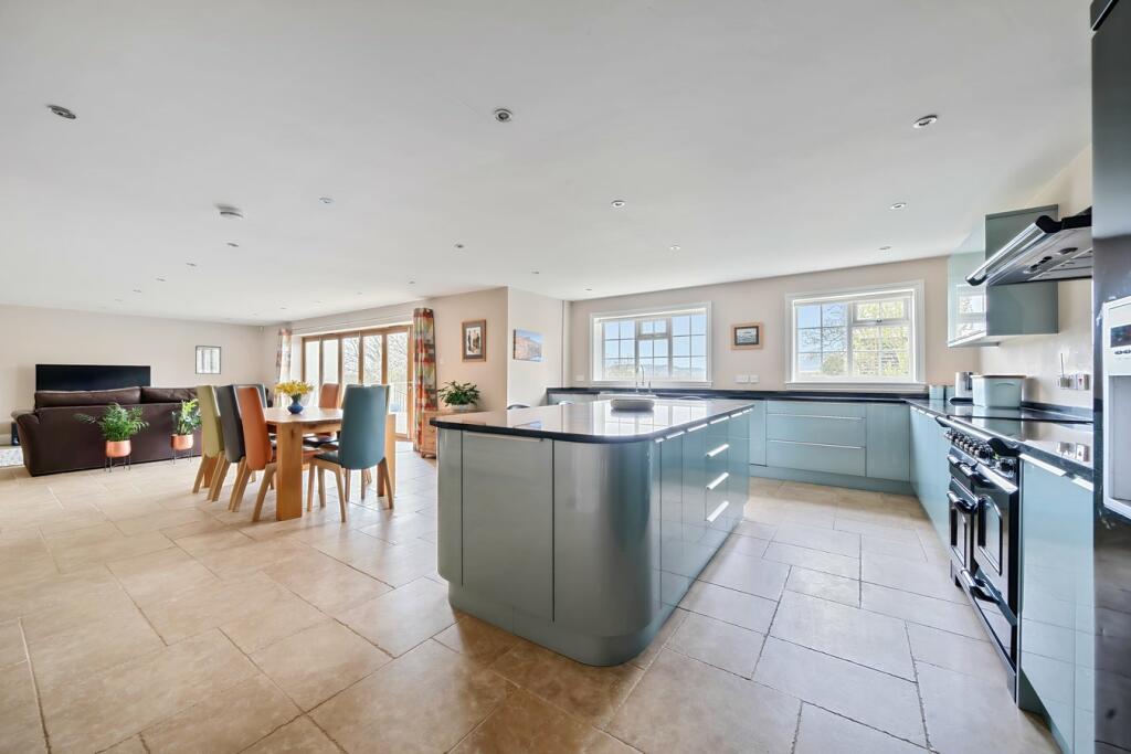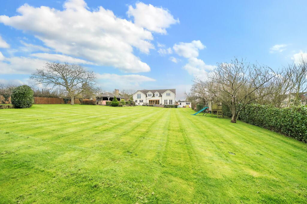 An impressive and beautifully presented six-bedroom family home, set in a pretty village location with stunning panoramic views and substantial grounds incorporating a covered outside bar, hot tub and detached garage.