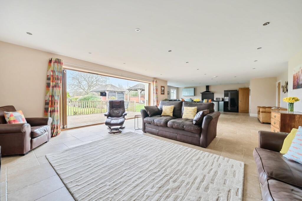 This six-bedroom, five-bathroom detached property located in Badgworth, Somerset, presents a compelling proposition for discerning buyers. The home is clearly well-maintained and boasts modern finishes, as evidenced by the crisp photographs showcasing updated fixtures and appliances, a sleek kitchen, and an expansive open plan living area with large windows to maximise natural light. The property’s notable features include a sizeable, well-landscaped garden, impressive outdoor decking, and additional outdoor structures like a covered seating area and potential workshop. The inclusion of an inside games room that includes a pool table further adds to this property’s appeal.