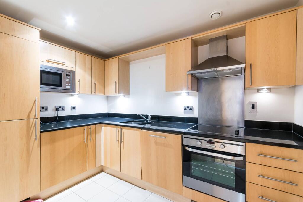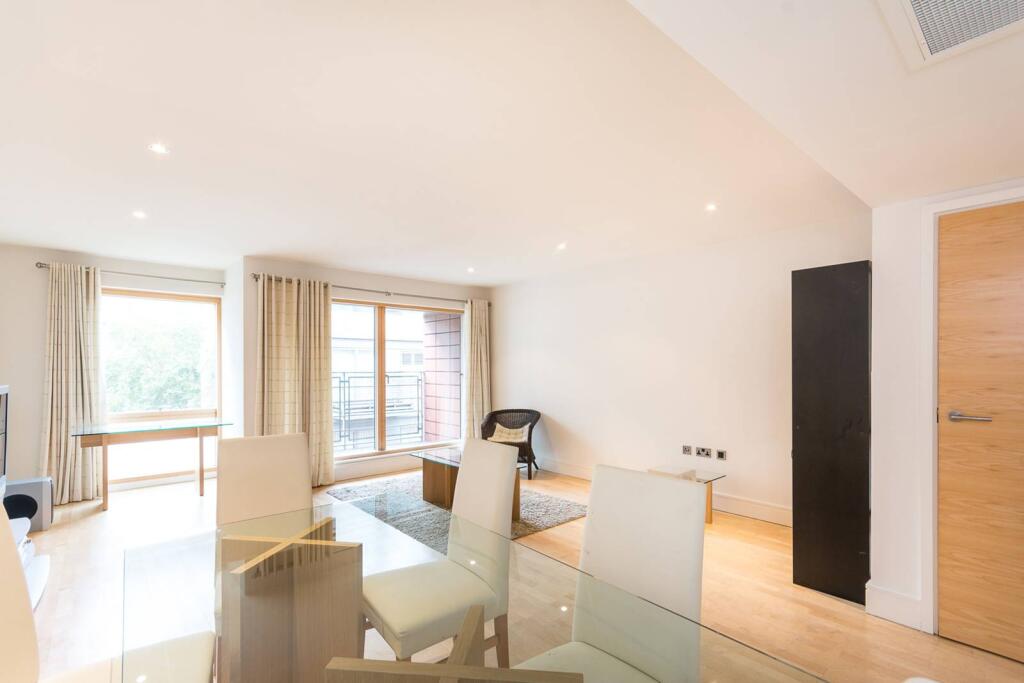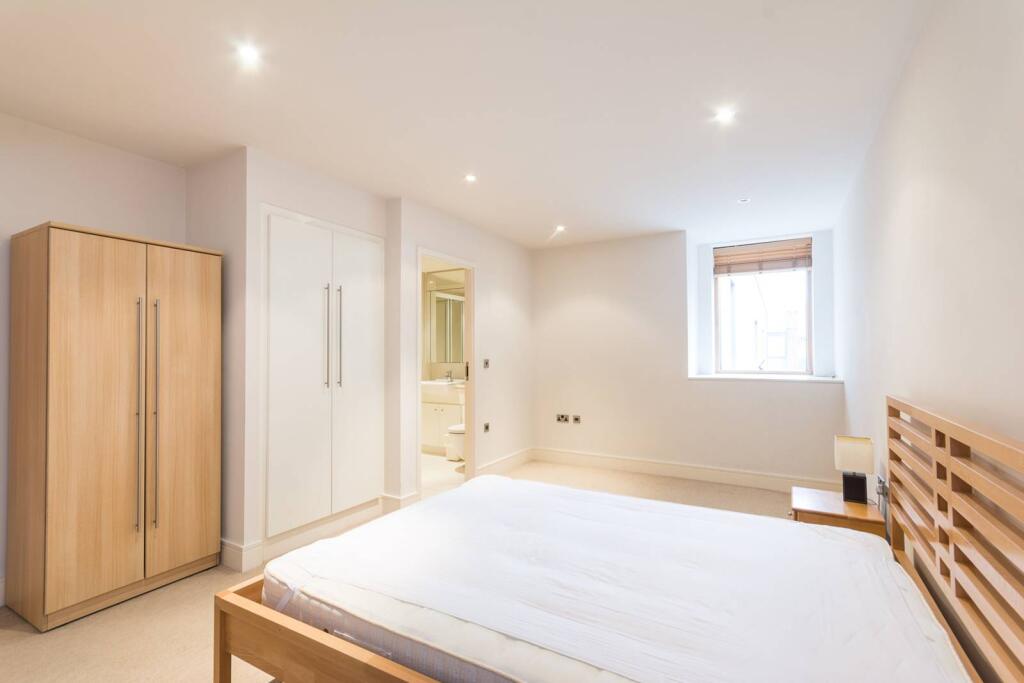 LONG LET. Offering an expanse of lateral space, this modern 2 bedroom, 4th floor apartment features a private balcony, two en suite bathrooms and a separate kitchen in a prime central London address.