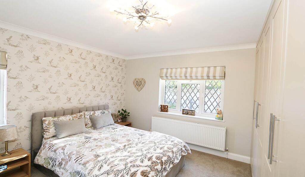 A pretty four-bedroom chalet bungalow, superbly maintained and tastefully decorated throughout, recently refitted to high standards. Overlooking fields to the front, and enjoys complete privacy to the rear.