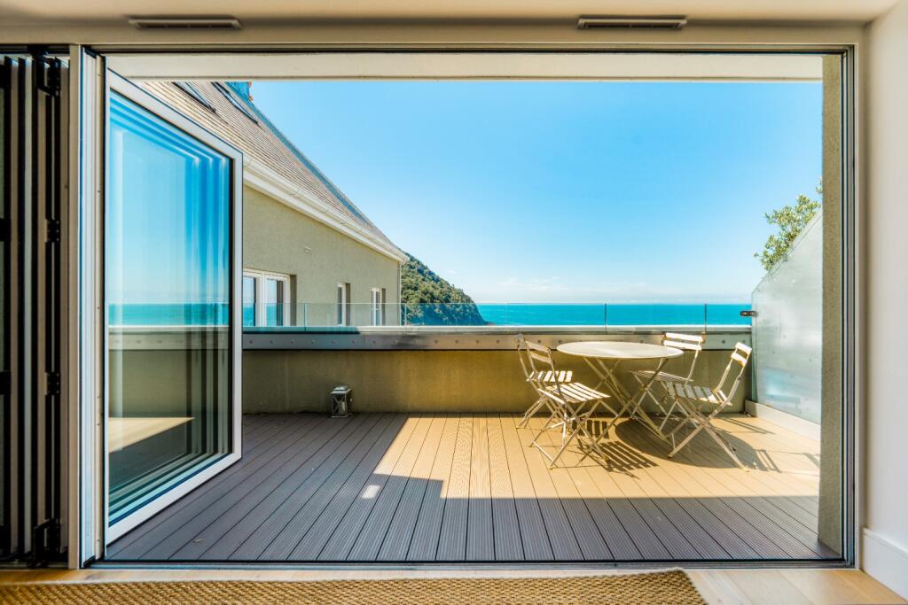 Ocean View at Tors Park is a light-filled two-bedroom duplex where heritage architecture meets coastal calm. From its open-plan living space and private terrace, gaze over Lynmouth harbour and Exmoor’s dramatic coastline. Perfect as a stylish home, weekend retreat, or high-yield holiday let.