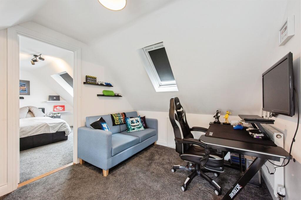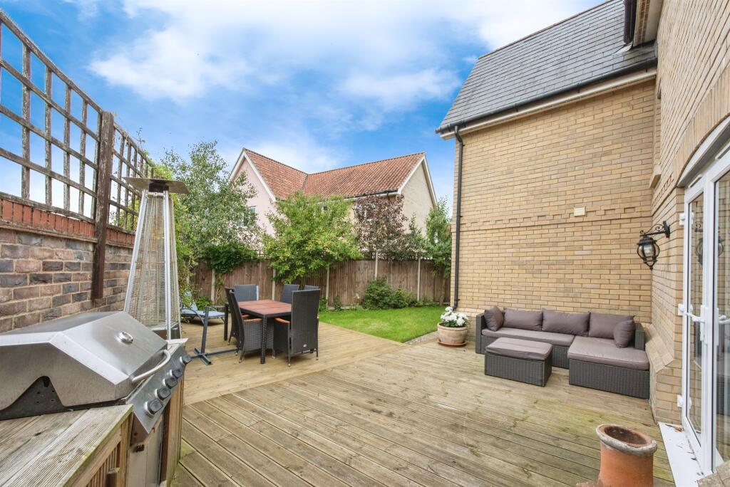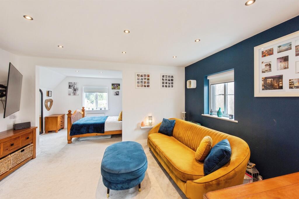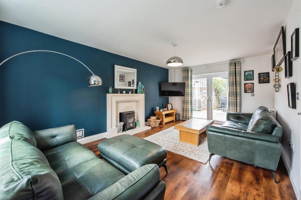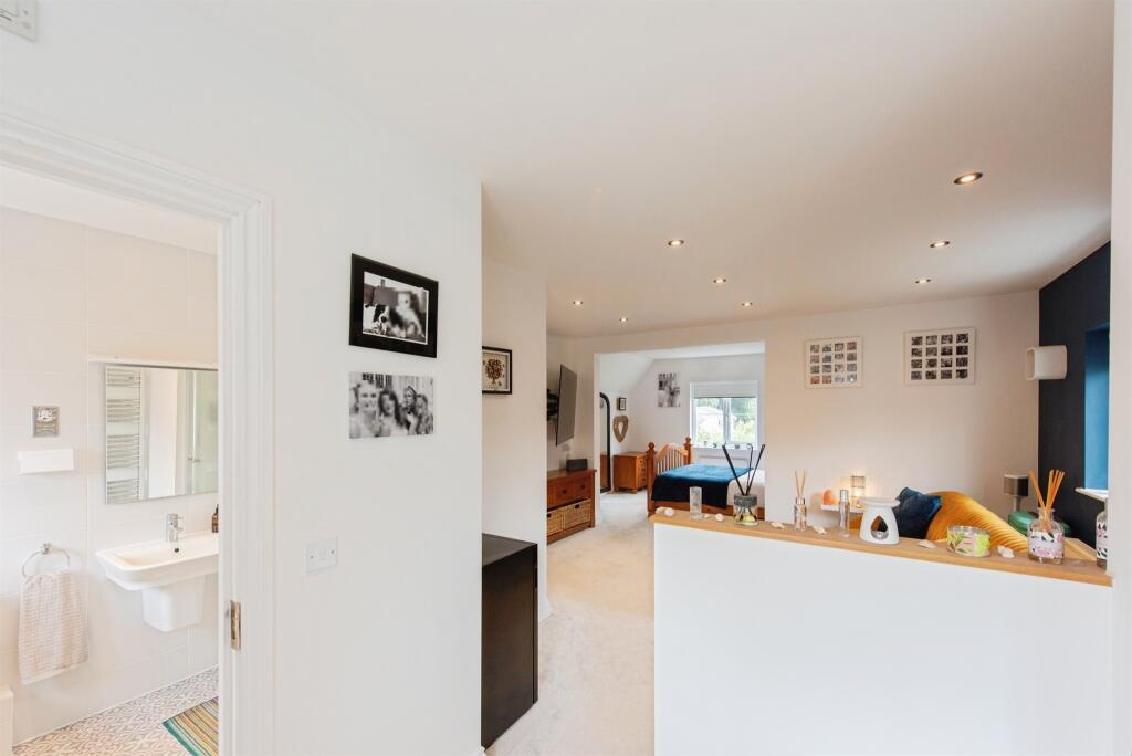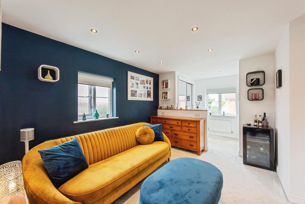 This spacious detached family homes features a welcoming entrance, lounge with a log burner, versatile study, and integrated kitchen/diner. It offers two large en-suite bedrooms, two more bedrooms, a family bathroom, a gym/office, and a lovely private garden. Perfect for family living!