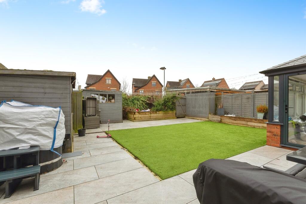This property is a 4-bedroom, 2-bathroom house located in Upton, Northampton. Based on the provided images, the property appears to be in excellent condition, recently renovated or updated with modern fixtures and finishes. The kitchen and bathrooms are particularly noteworthy. The property includes a garden with artificial turf, patio area, and garden shed. The location is in a residential area with nearby schools and transportation links. The list price of £525,000 needs to be considered in relation to comparable properties in the area. While there is a lack of precise square footage data for nearby properties, the available information suggests that this property may be at the higher end of the pricing spectrum for the area, although the modern condition and garden could justify this.