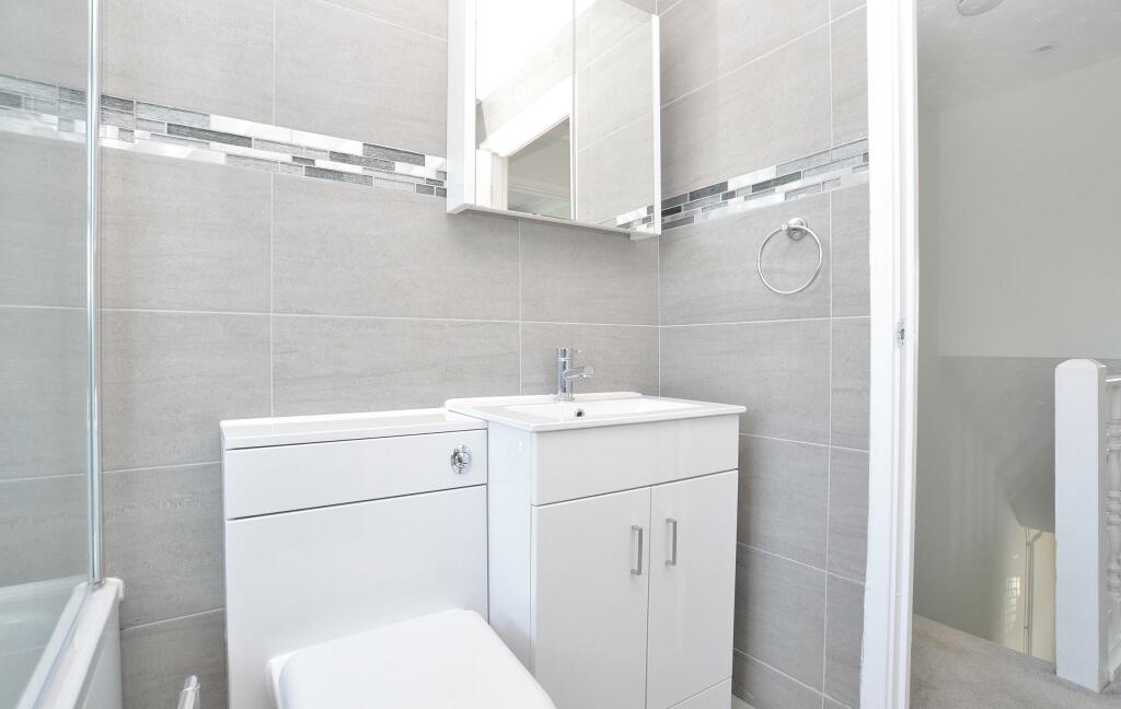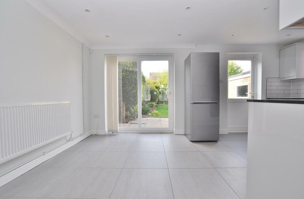 This three-bedroom semi-detached house located on Moss Way, Hitchin, Hertfordshire is presented in good condition. The property benefits from a recently updated kitchen and bathroom, offering modern amenities. The kitchen features sleek white cabinets, granite worktops, and integrated appliances. The bathroom presents a contemporary look with grey tiles and a modern suite. The living room has wooden flooring, a feature fireplace and access to the rear garden, which is of a modest size, but provides some outdoor space and appears nicely landscaped. The property’s proximity to Oughton Primary and Nursery School is a significant plus point, enhancing its appeal for families. Hitchin offers good transport links via its railway station, making commuting to London relatively straightforward. The lack of specified square footage and plot size, alongside limited details about the condition of areas of the house not shown in photographs, makes it challenging to definitively gauge the property’s complete value in comparison to local market trends. Further information is required for a more in-depth valuation and assessment.