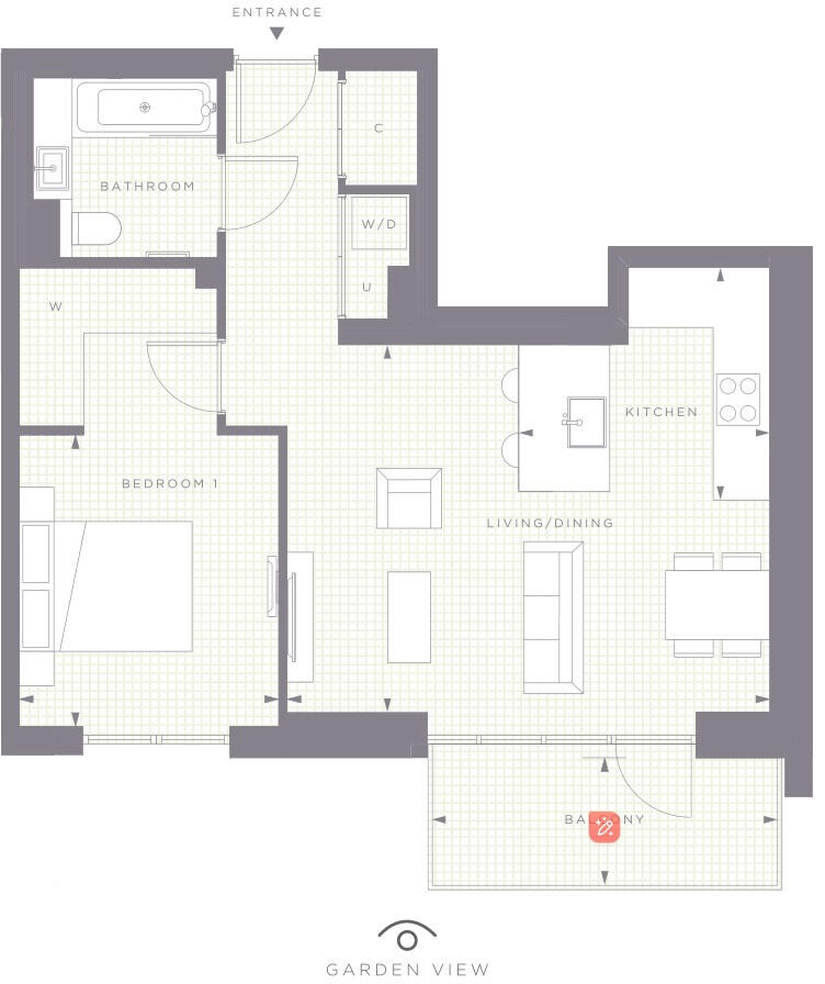 - 1 bedroom - 2nd floor (Garden view) - 580 sqft internal + 63.5 sqft balcony - Floor to ceiling windows - 24 Hr Concierge - Communal gardens - Resident's Lounge - Cineplex - Health club - Gym - Swimming Pool - Sauna / Steam Room