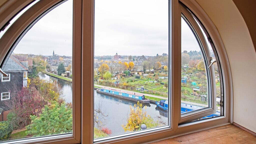 A beautifully presented two-bedroom top floor riverside apartment offering light-filled living and a characterful outlook across the River Lea with passing canal boats and leafy allotments.The property is offered furnished.