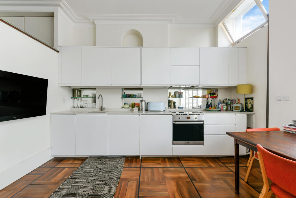 Situated on a charming residential street in the heart of Maida Vale, this stylish ground-floor one-bedroom flat combines period character with contemporary design.Boasting beautiful parquet flooring and soaring high ceilings, the property offers a bright, airy feel throughout. A cleverly designe...