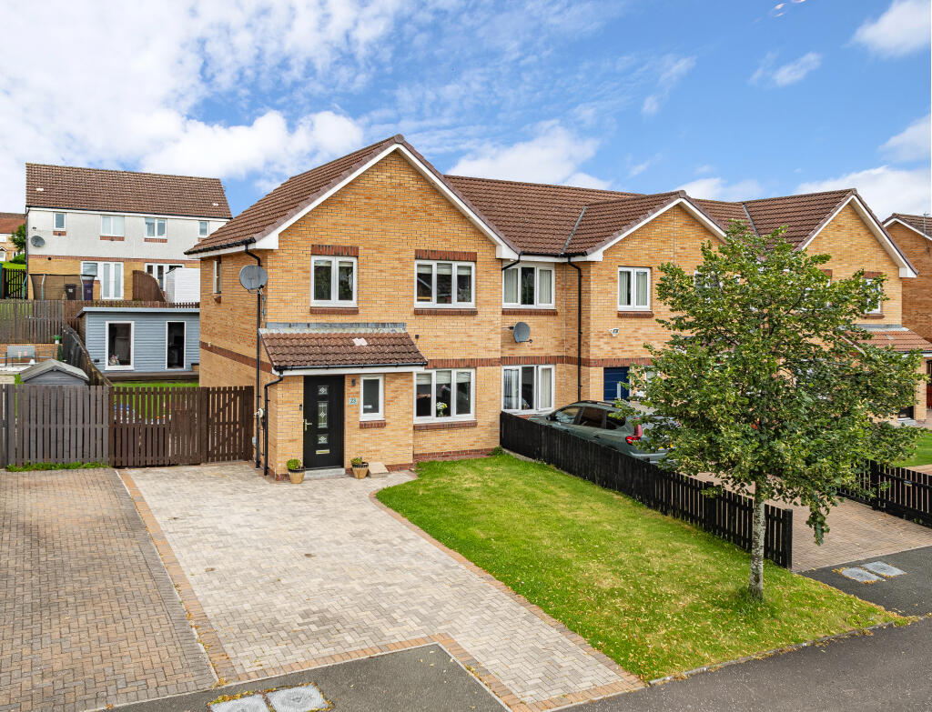 An impressive 3-bedroom end terraced villa occupying a larger-than-average garden plot with summerhouse, peacefully positioned within a sought-after modern development near Glasgow Fort and a wide array of local amenities. EPC - C.