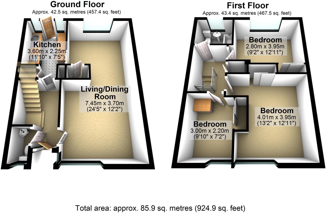 Situated within a quiet, picturesque spur is this three bedroom end terrace property which offered an ideal family home or investment purchase. Accommodation comprises entrance hallway, lounge/dining room, fitted kitchen, downstairs WC, first floor family bathroom and a private 50ft x 30...