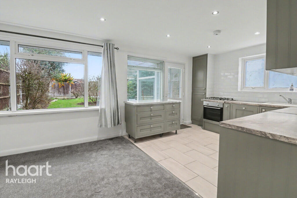 This is a three-bedroom semi-detached bungalow in Rayleigh, Essex. The property benefits from a modern kitchen and bathrooms and a garden. The property is located close to local schools and transportation links. The property is listed for £425,000, which appears to be a reasonable price for the area. The property is in generally good condition, but some areas may benefit from cosmetic updates. Overall, this property would make a good family home or investment.