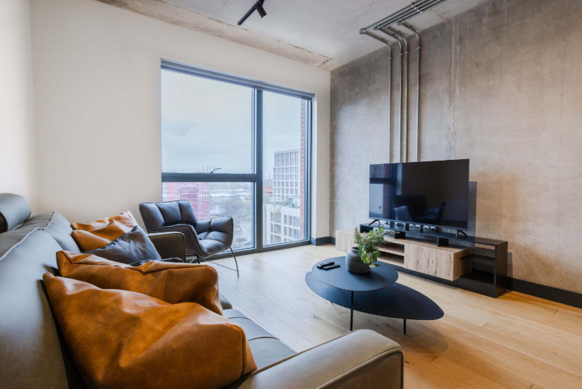 Modern 2-bed apartment in New Cross Central, fully furnished and ready to move into. Located on the 8th floor with dual-aspect views, landscaped communal courtyard, and cycle storage. Steps from the Northern Quarter, Ancoats, and Victoria Station.