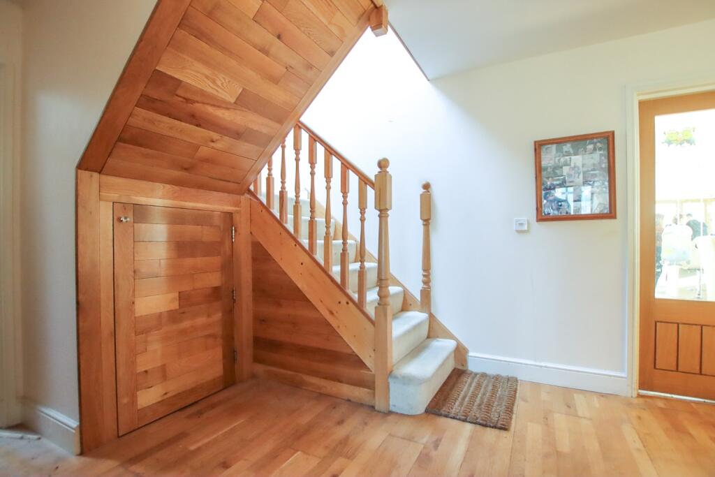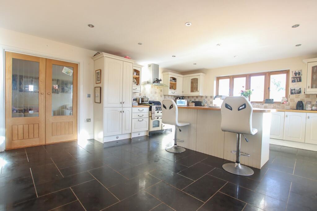 A spacious family home with versatile accommodation and a detached triple garage, occupying a private and mature plot of around 0.3 acres (sts) and backing onto fields on the outskirts of Heacham.