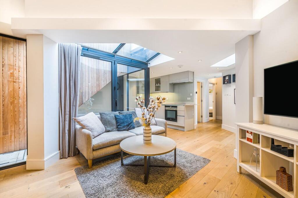 A beautifully appointed over 500sq foot one double bedroom ground floor flat with over 500 sqft, underfloor heating, a small courtyard and a mezzanine used for storage or small office
