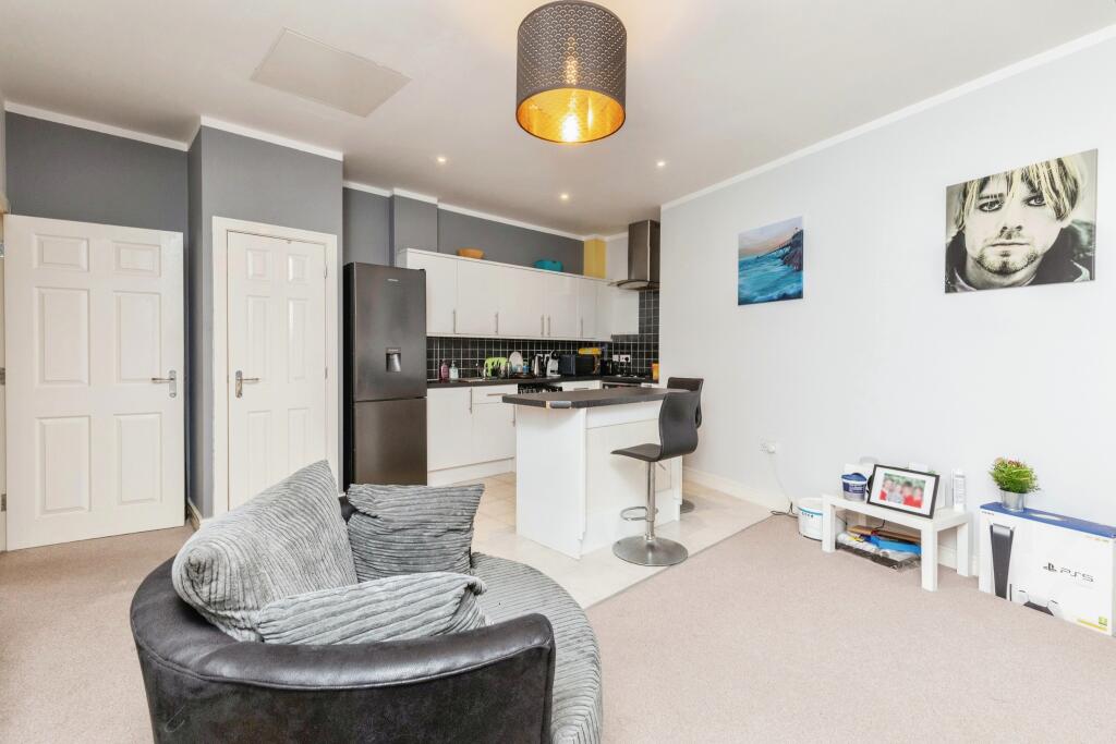 This property is a two-bedroom, two-bathroom apartment located in St George Central, Bristol. Based on the provided images, the property appears to be in good condition, with a modern and well-maintained interior. The apartment benefits from a spacious open-plan living area and kitchen. While the images do not show a garden, the plot size is listed as 755.63 sqft, which may include a small patio or balcony. The list price of £230,000 is slightly below the average price for the area (£297,551), but it is important to consider that the average sqft is 758, whereas this property is 963.59 sqft. The price per sqft is not provided, making a comprehensive price analysis difficult. The location is close to several schools with good Ofsted ratings and is within reasonable distance of several train stations. Overall, this appears to be a well-maintained property in a convenient location.