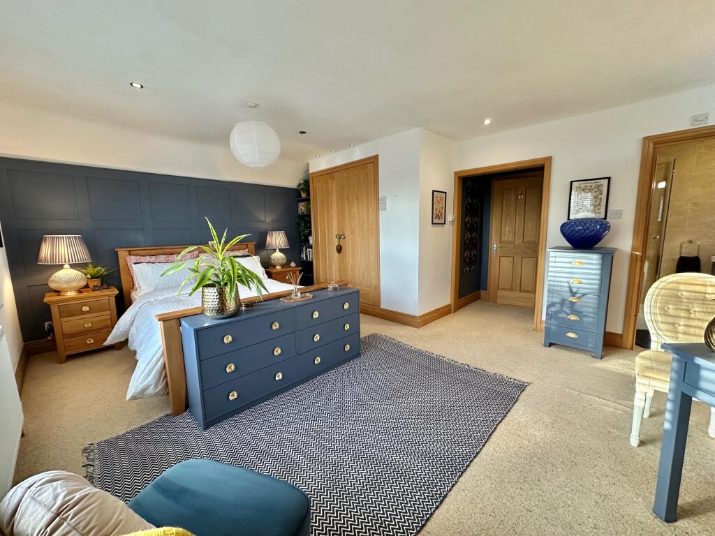 A light, spacious and beautifully presented four bedroom detached home offering driveway to rear providing parking, well-maintained wrap around gardens, raised decking area with built-in swimming pool, garage with self-contained annexe, and far reaching views.