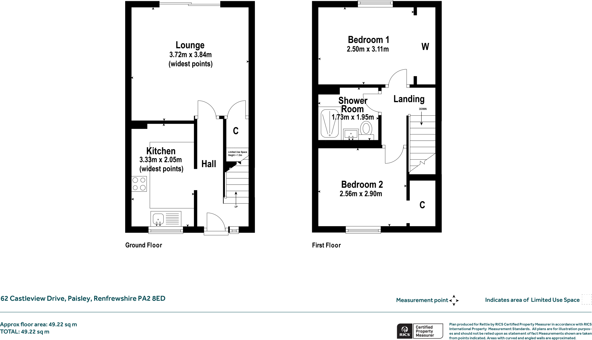 The property is a 2 bedroom, 1 bathroom terraced house located in Paisley, Renfrewshire. The list price is £135,000. The property has a plot size of 529.80 sqft and is 427 sqft internally. Based on the provided images, the property appears to be in good condition. The interior is modern and well-maintained, with a recently updated kitchen and bathroom. There is evidence of recent renovations or upgrades throughout the property. The garden is relatively small, but well-maintained and enclosed. The location is described as a quiet pocket of Paisley, close to the Gleniffer Braes and local amenities and transport links. The proximity to several train stations (Paisley Canal, Paisley St James, Paisley Gilmour Street, Neilston, and Johnstone) suggests convenient access to public transportation. However, information on the quality of local schools and shops is not provided. Considering the property’s condition, the relatively small plot size, and the location, the list price of £135,000 appears reasonable compared to the average price per square foot in the area (£295). However, the average house price in the area (£254,285) and average size (861 sqft) are significantly higher, suggesting that this property is smaller and cheaper than average. The nearby comparable properties also show a range of prices, some higher and some lower than the listing price. More information on the specifics of the local amenities and the specifics of comparable properties would allow for a more precise evaluation of the price.