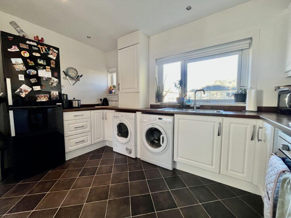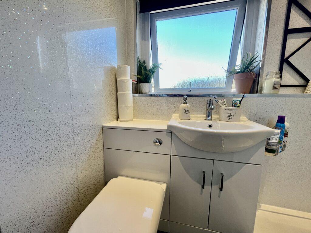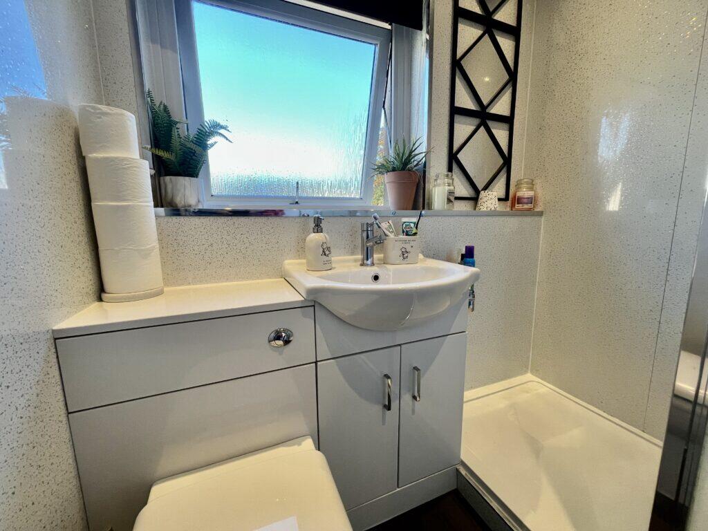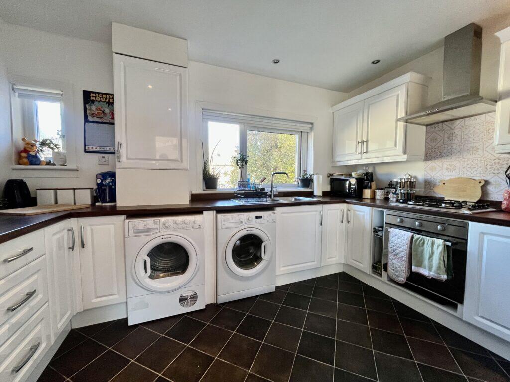 This is a two-bedroom flat in Wishaw, North Lanarkshire. The property is in reasonable condition, with a modern kitchen and bathroom. It benefits from a front garden/driveway and a rear garden. The property is located approximately 1.03 KM from Wishaw train station. The listing price of £74,999 appears to be good value for money, as it is below the average price for the area.