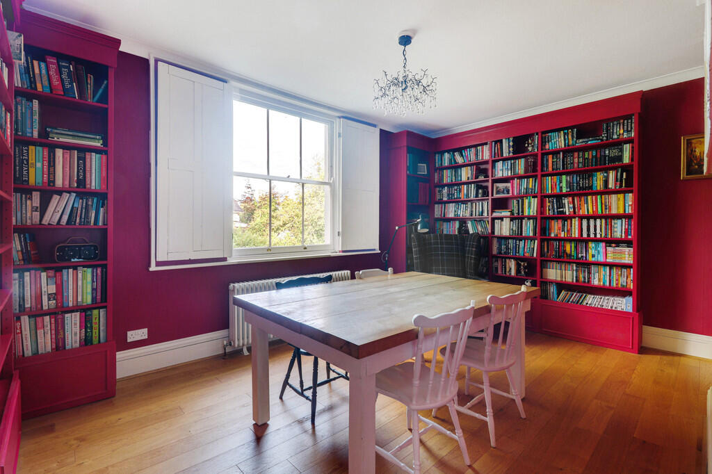 The substantial rear portion of a fine 19th Century period house featuring spacious family accommodation over three floors including an impressive drawing room with views over its large private garden and an attractive kitchen/dining room with doors out to west facing patio. Quiet central village...