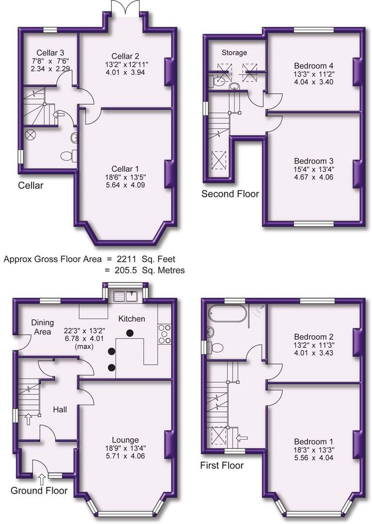 AN IMPRESSIVE, COMPREHENSIVELY UPGRADED, FOUR DBL BEDROOMED PERIOD FAMILY HOME WHICH OFFERS OVER 2200 SQFT OVER FOUR FLOORS. STUNNING OVER 80FT PRIVATE REAR GARDEN. ELECTRIC GATED DRIVEWAY. HIGH SPEC FITTINGS. Porch. Hallway. Large Lounge. Dining Area. Stylish Kitchen. Useable Cellars. ...