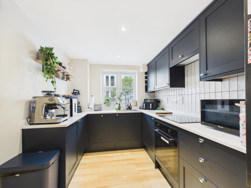 This is a two-bedroom maisonette in Hitchin, Hertfordshire. The property appears to be in good condition, with a modern kitchen and bathroom. It benefits from a balcony and access to communal gardens. The location is convenient for transportation and schools. The asking price seems reasonable given the location, condition, and size of the property.