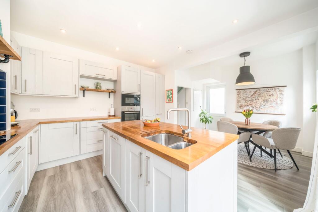 A beautiful three bedroom 1930's house in a desirable tree-lined road. To the front is off street parking for two cars and a shared access to the garage. Inside is a spacious living room with bay window, hallway with storage, and a large fitted kitchen-diner with island tha...