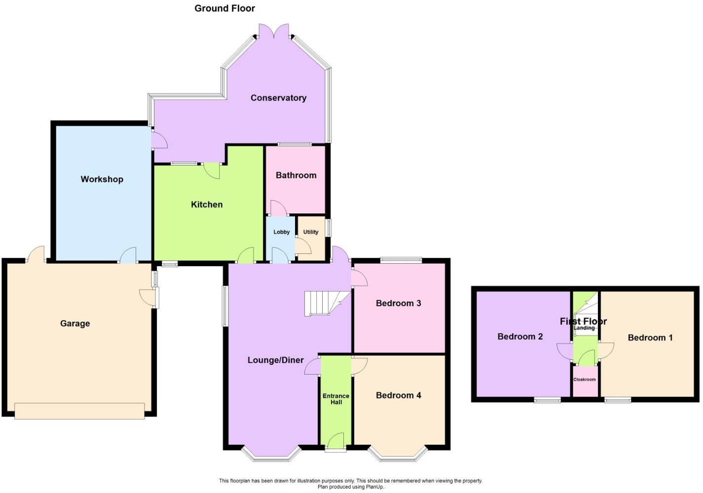 A detached four bedroom Chalet bungalow comprising of an entrance hall, lounge/diner, kitchen, downstairs bathroom, bedrooms three and four, conservatory, workshop/utility room, integral double garage with electric door. Upstairs, two further bedrooms and a cloakroom. Outside, to the rear well es...