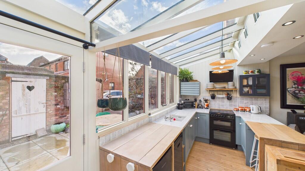 Unique, immaculate cottage hidden in the medieval grid, ideally close to the theatre and all town amenities. Striking open-plan kitchen/living with glass roof, flexible ground-floor bed/dining, shower room, utility. Luxury master with slipper bath. Sunny walled courtyard, permit parking—mus...