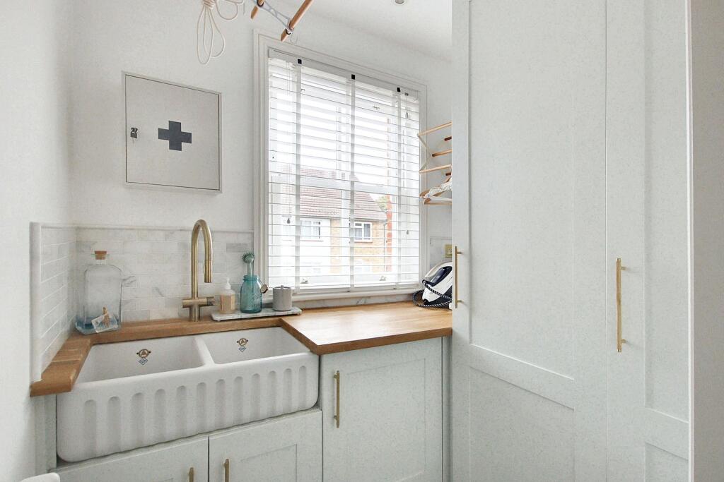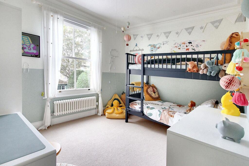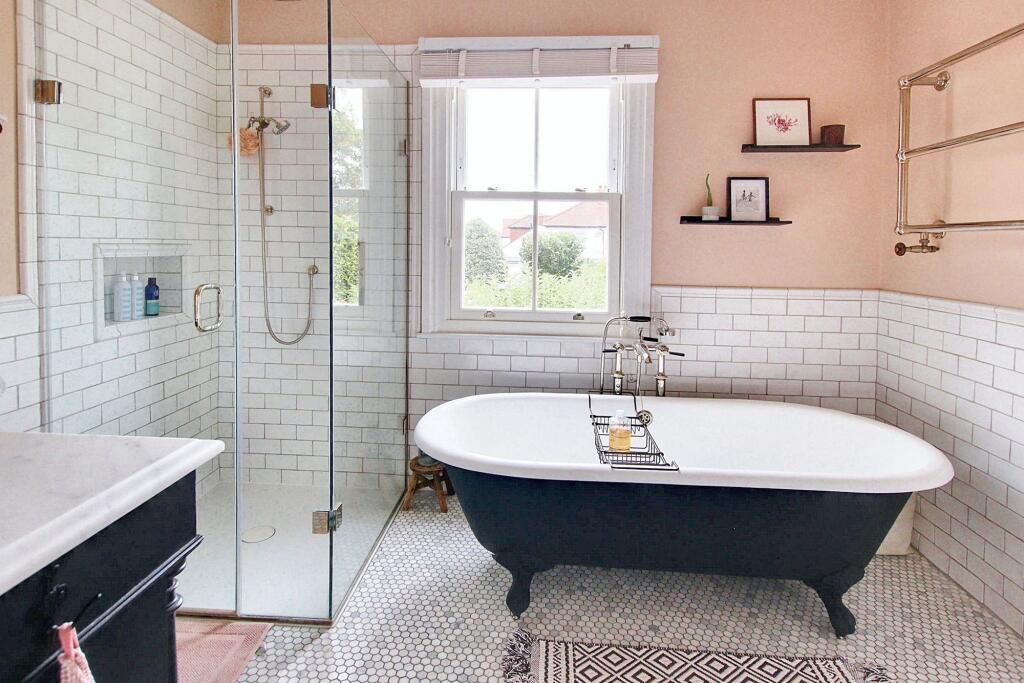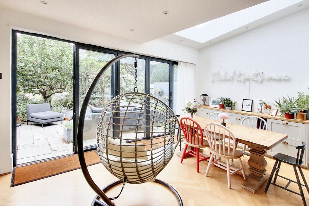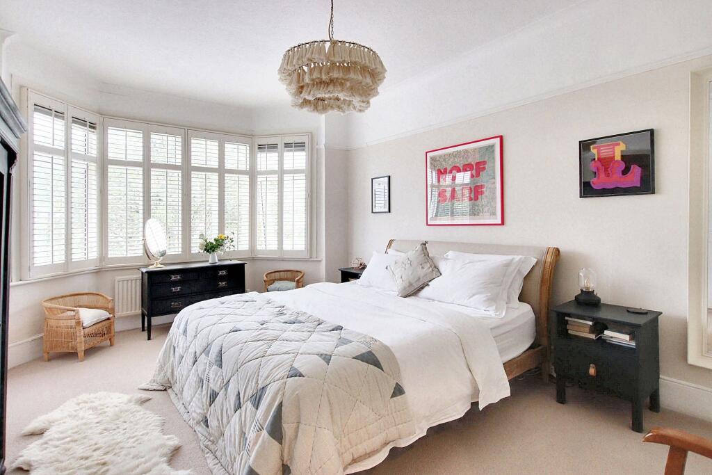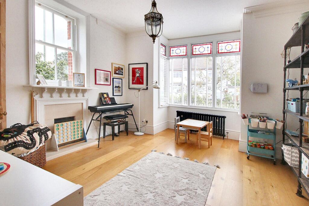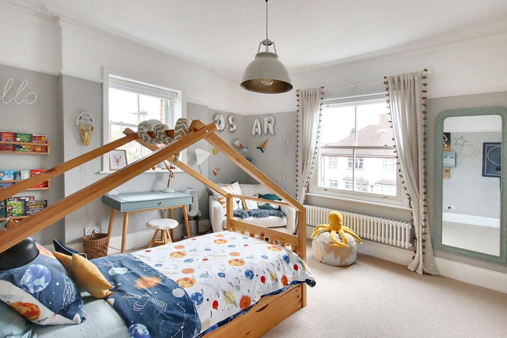 Exceptional character residence with six bedrooms, 'Devol' fitted kitchen, stunning reception rooms, high-end finish, luxury bathrooms, off street parking, close to schools, High Street, and Station