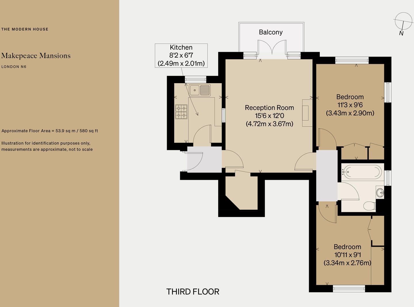 This is a two-bedroom flat in Makepeace Mansions, Highgate, London. The property is listed by The Modern House. The flat has one bathroom. The property is in a desirable location, close to local amenities and schools. The flat appears to be in good condition, with modern fixtures and fittings. The bathroom and kitchen have been recently renovated. The interior design is modern and stylish. The property has a balcony, but no garden. The list price of £675,000 seems reasonable given the location, condition, and size of the property.