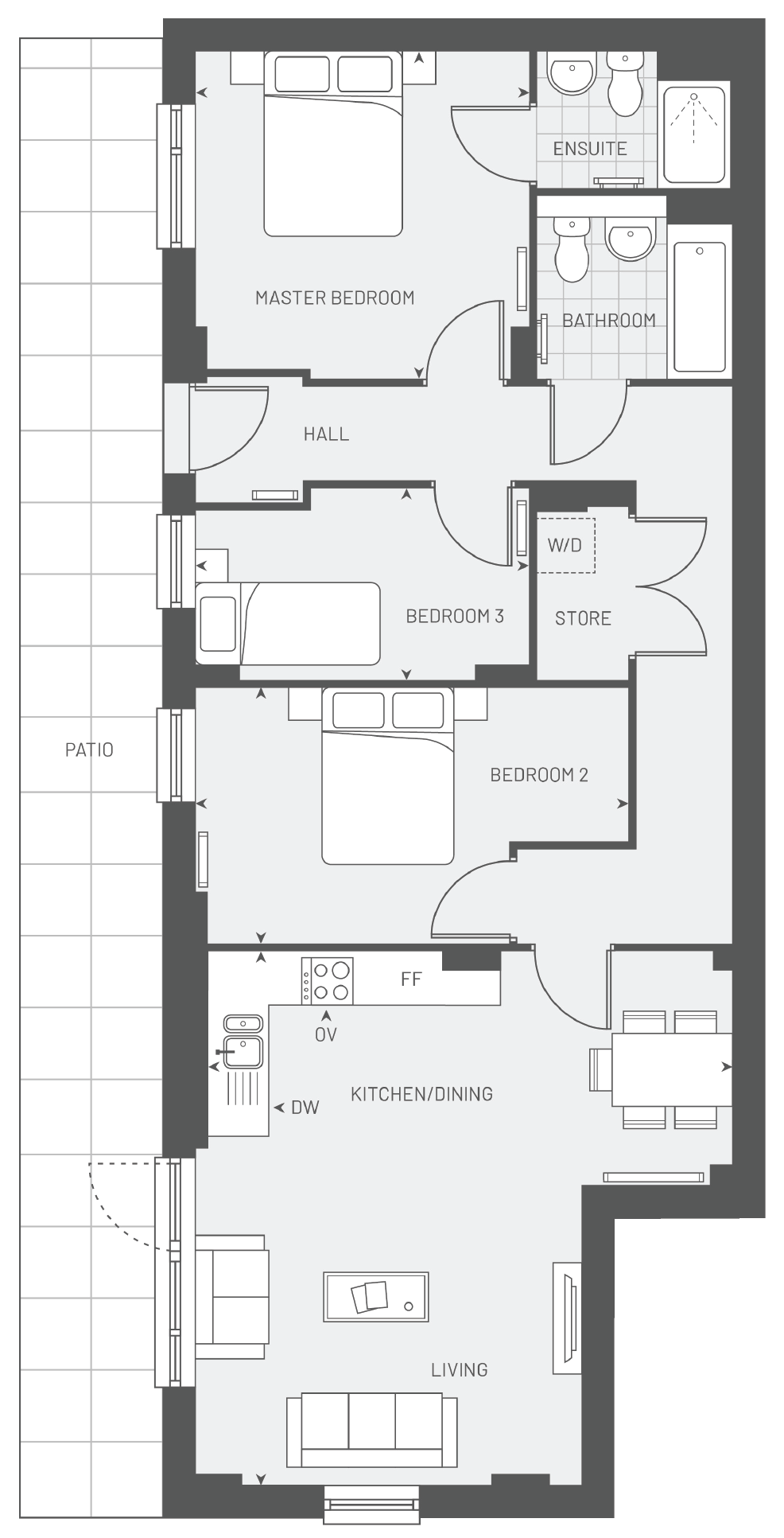 **UP TO £25,000 TOWARDS YOUR DEPOSIT** Ground floor three bedroom apartment, boasting an open plan living area, integrated appliances, modern specification, master bedroom with an en-suite and a large north-west facing terrace.