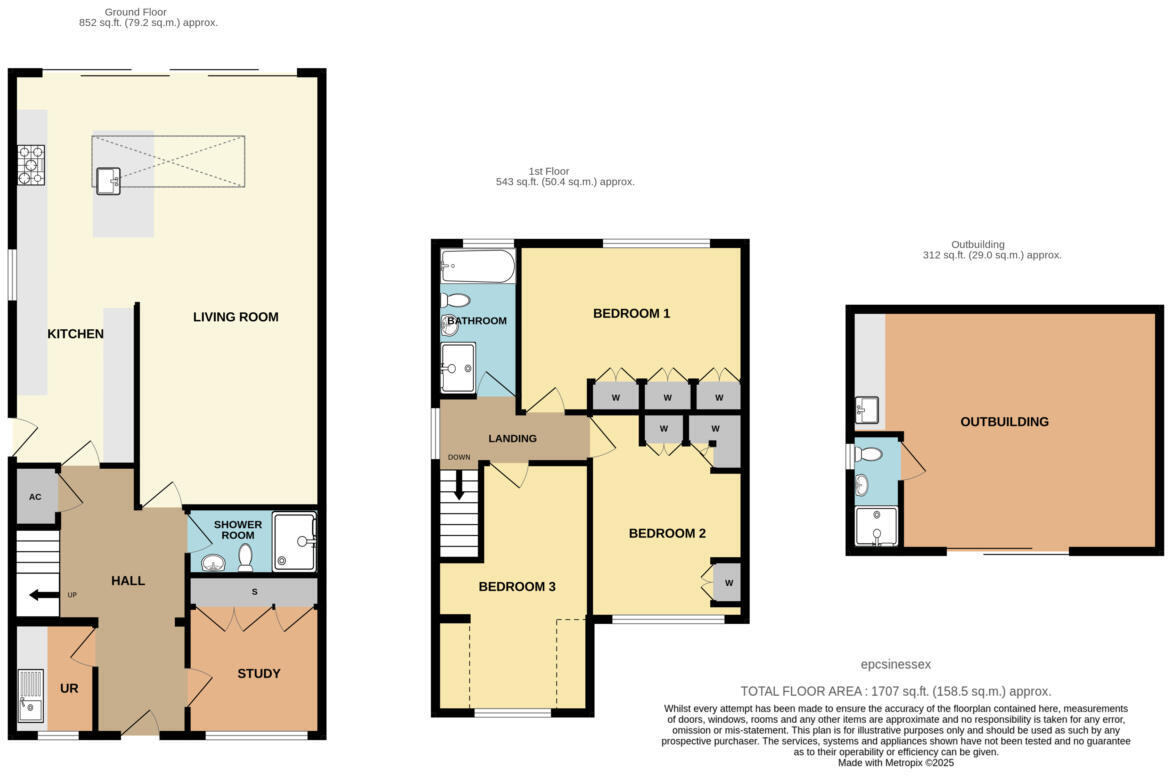 This is a well-presented semi-detached property in Cranham, Essex. The house features modern interiors, including a contemporary kitchen and updated bathrooms. The property also benefits from a garden with a decked area and an outbuilding, offering additional space for work or leisure. While the price is above the local average, the condition and features of the property justify a higher valuation. The proximity to good schools and transportation links further enhances its appeal.