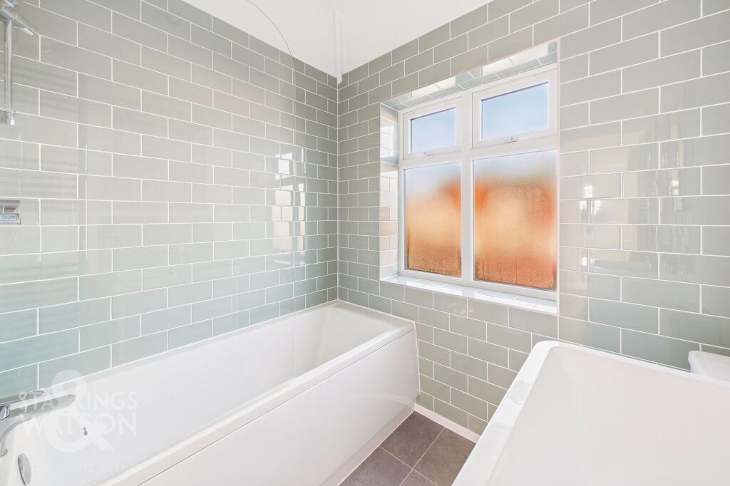 This is a semi-detached property in Thorpe St. Andrew, Norwich. It features three bedrooms and two bathrooms. The property has been modernised, with a new kitchen and bathrooms. It also benefits from a good-sized garden. The property is located close to schools and amenities, making it suitable for families. The price is reasonable for the area, but not significantly below market value.