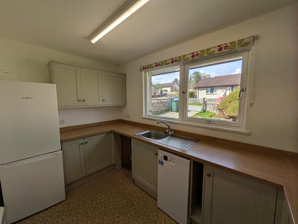 This semi-detached bungalow is located in Boat of Garten, Inverness-shire. The property benefits from three bedrooms and one bathroom and is listed at £235,000. Based on the provided images, the property appears to be in good condition, with a recently renovated kitchen and flooring. The bathroom appears to be original and may benefit from modernisation. The property has a small garden and a detached garage. The location is in a quiet residential area with some nearby amenities. Transport links appear to be approximately 8.71 km to the nearest ScotRail station in Carrbridge. Given the average price per sqft in the area is £237, and this property is listed at a price per sqft of approximately £311, this property is slightly above average price per sqft. However, considering the recent renovations and inclusion of a garage, the asking price may be justifiable.