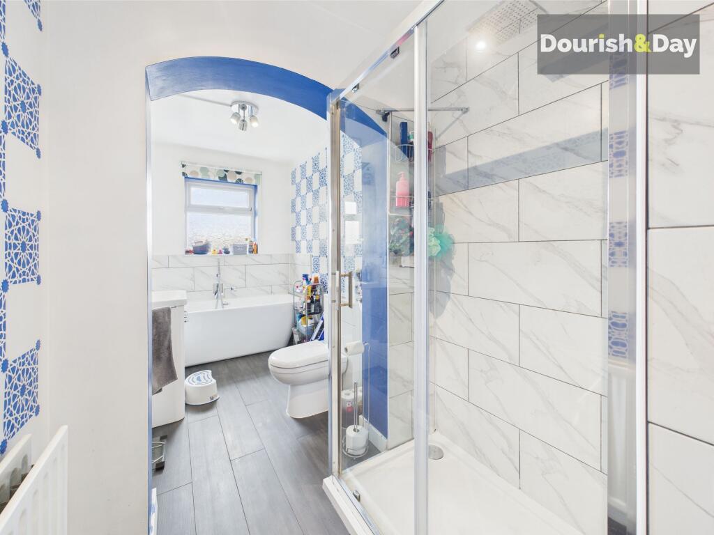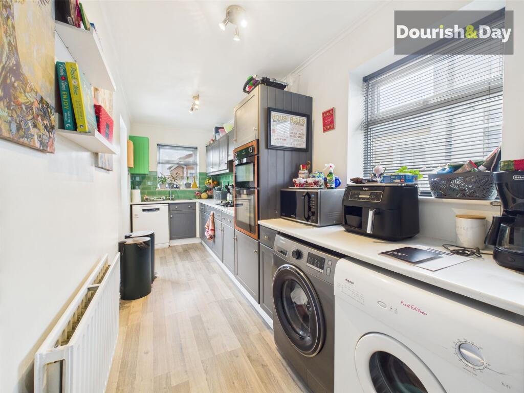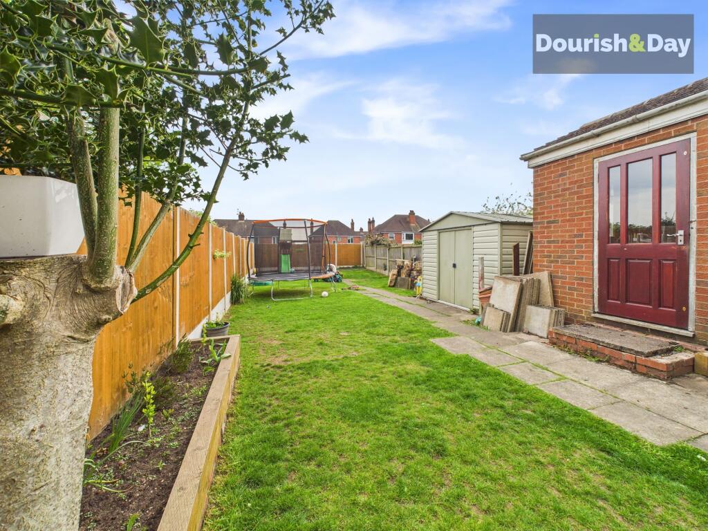 The property is located in Eastlands, Stafford, a residential area with nearby schools and a train station. The images suggest the property is in good condition, with modern updates to the kitchen and bathroom. The garden appears to be of a reasonable size. The list price is below the average for the area, potentially representing good value.