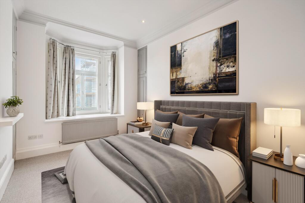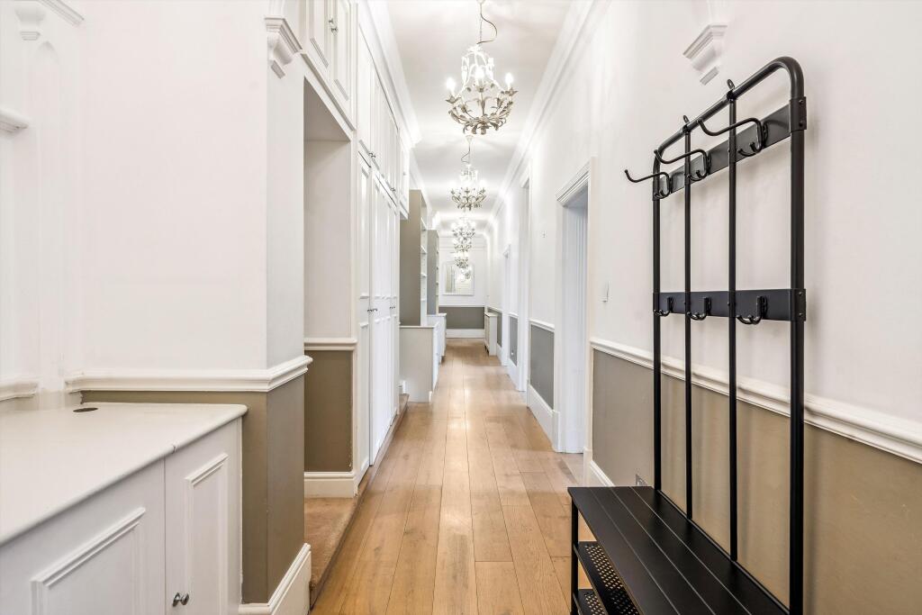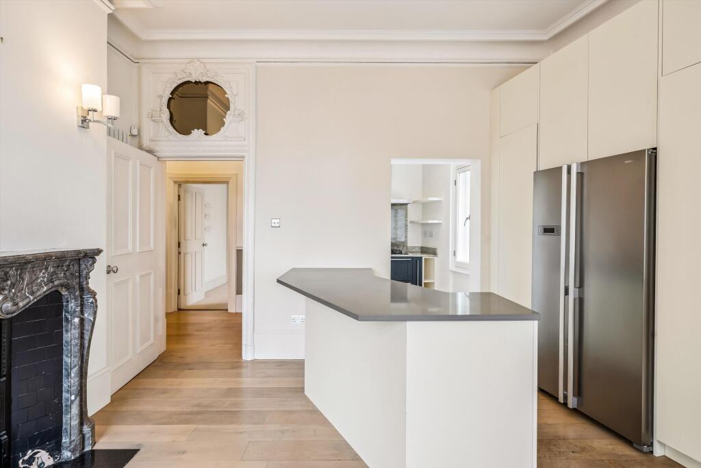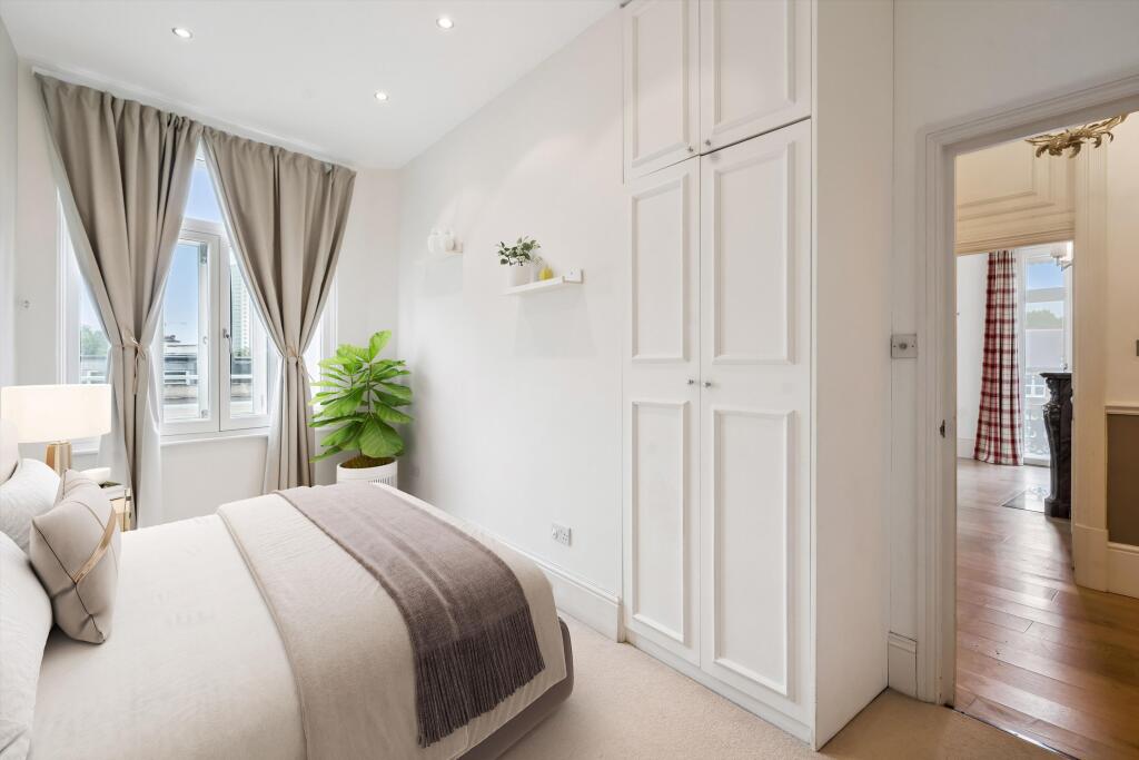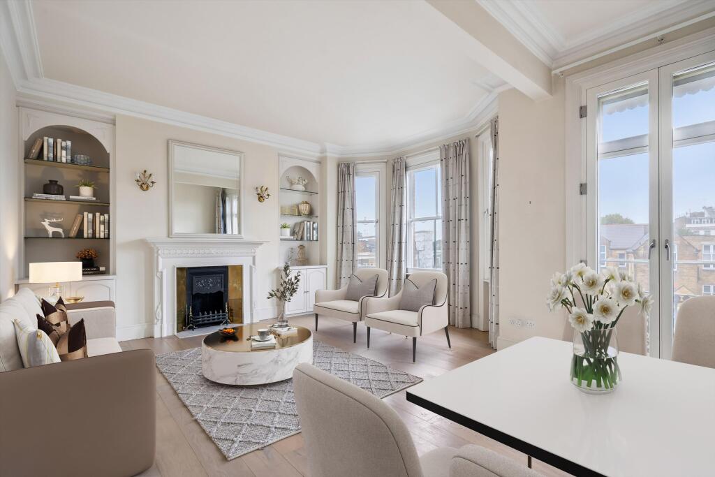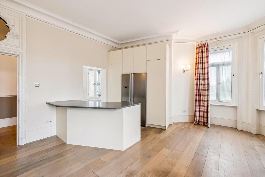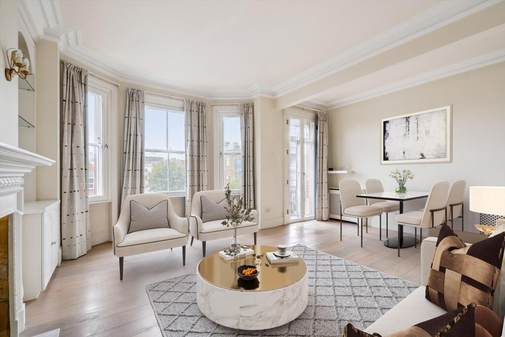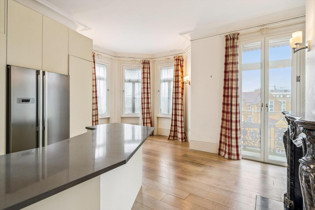 A 4 bedroom apartment situated on the third floor with lift and porter, SW5 Upon entering the apartment, you are welcomed by the hallway that leads to an impressive reception room. This elegant space has large windows, flooding the room with natural light and offering access to a private balcony...