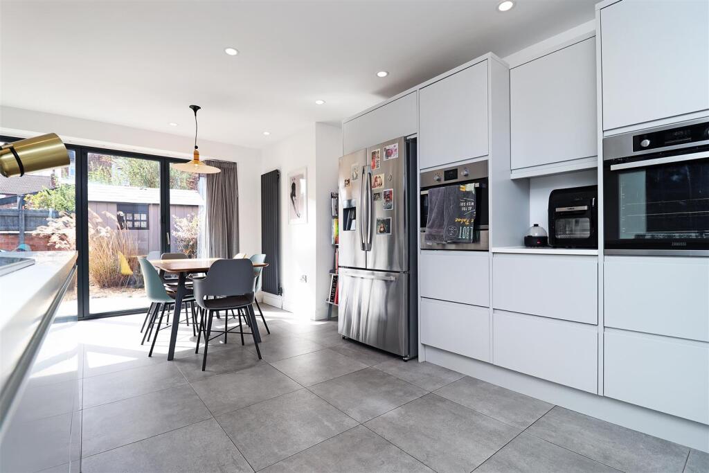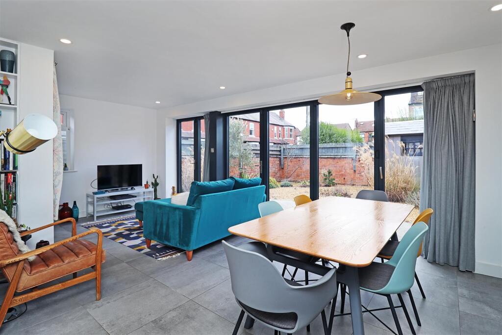 A substantially extended and replanned end of terrace house with contemporary open plan living space and positioned in a highly popular location. The superbly presented accommodation briefly comprises enclosed porch, entrance hall, sitting room, stunning living/dining kitchen with integrated appl...