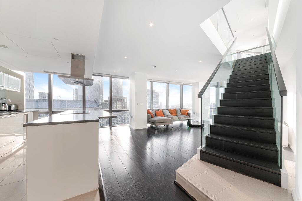Duplex apartment to let in West India Quay E14 Knight Frank are pleased to offer this duplex apartment located on the 21st and 22nd floor of the No.1 West India Quay development. The apartment is set over approximately 227.05 sq m (approximately 2444 sq ft) and offers open plan reception room, ...