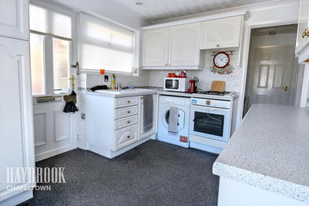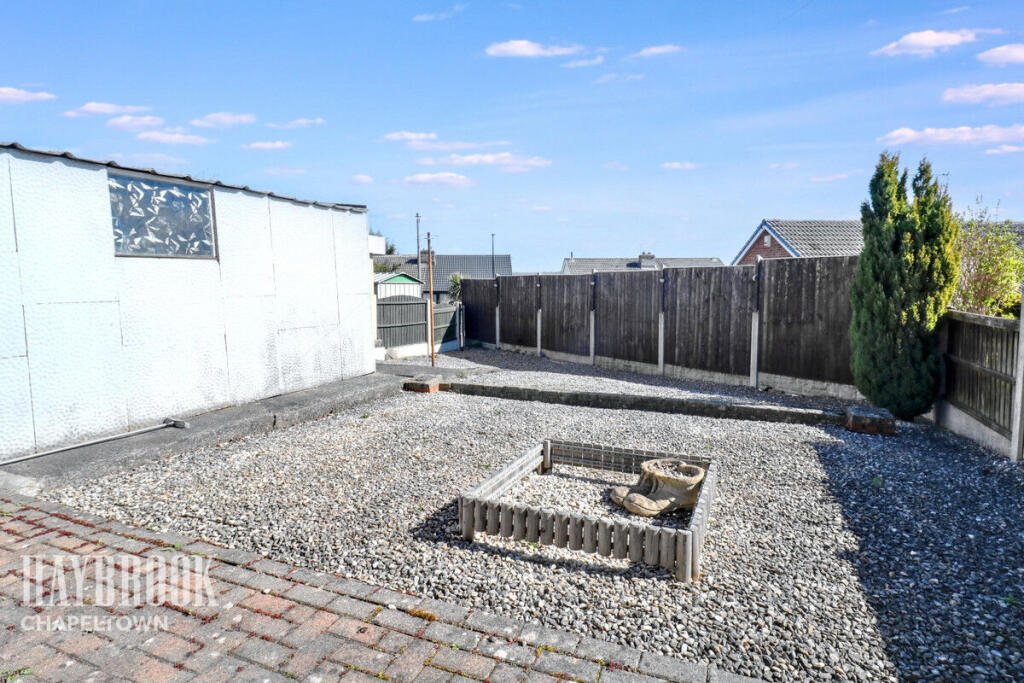 This property is a 2-bedroom bungalow located in Burncross, Sheffield. The location benefits from being relatively close to several primary schools, with Windmill Hill Primary School being the closest at 0.15km. Chapeltown Train Station is also within reasonable proximity at 1.69km, providing access to the Northern Trains network. The property itself appears to be in need of some modernisation and updating. The kitchen and bathroom, while functional, look dated. The carpeting and general décor throughout suggest a need for refreshing. The garden is relatively small and mainly composed of gravel. The list price of £190,000 seems slightly high compared to the average price per square foot in the area (£223), especially considering the condition and size of the property. However, the lack of available sqft data for comparable properties makes a definitive statement challenging. The property includes a garage and a shed.