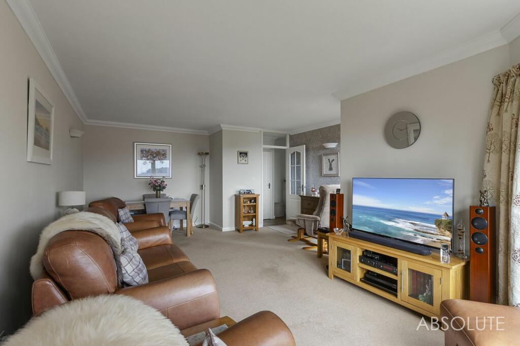 Rare two-bedroom apartment in sought-after coastal location. Spectacular sea views from spacious lounge and enclosed balcony. High-spec kitchen, modern bathrooms, ample storage. Gas heating, double glazing, communal gardens, parking, and garage. Tranquil retreat for refined coastal living.