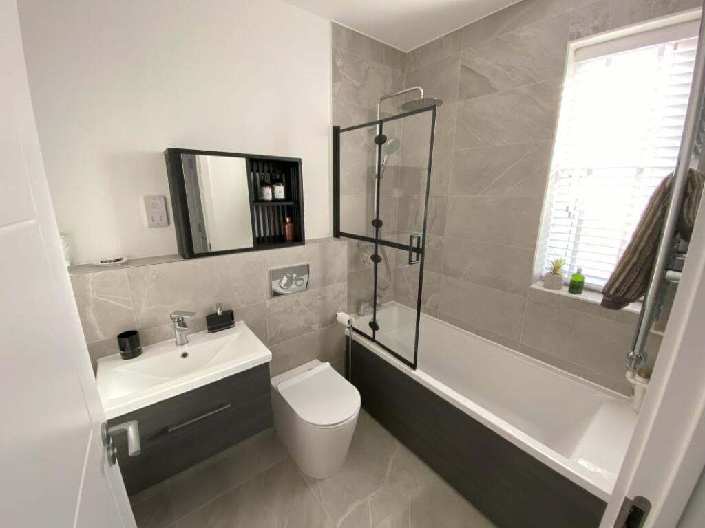 This three-bedroom, two-bathroom property in Great Cornard, Suffolk, presents itself as a well-maintained and modern home. The photographs showcase a contemporary interior design with a high-quality finish. The kitchen is particularly noteworthy, featuring modern appliances and ample space. The inclusion of a garden adds to the property’s appeal.